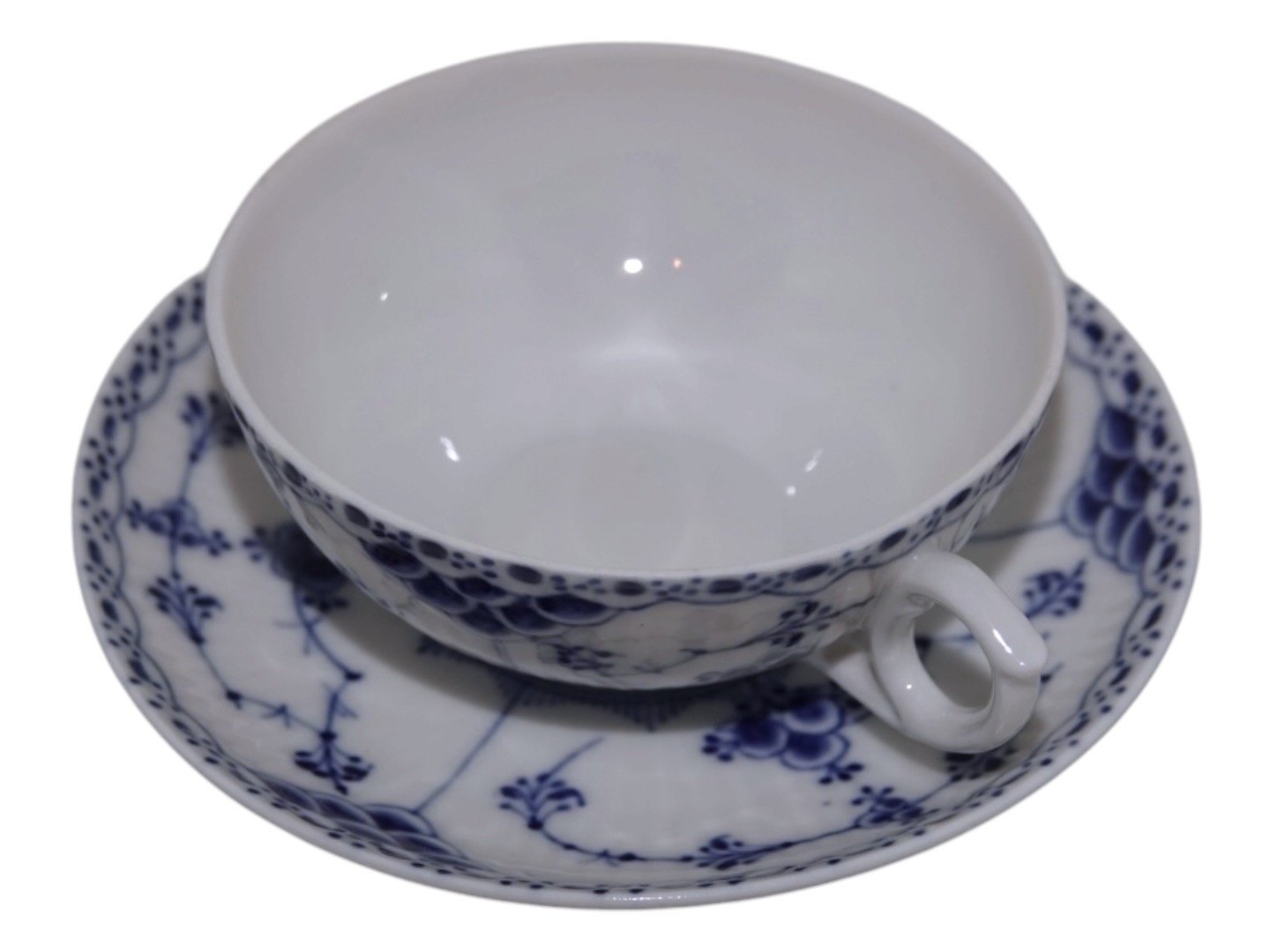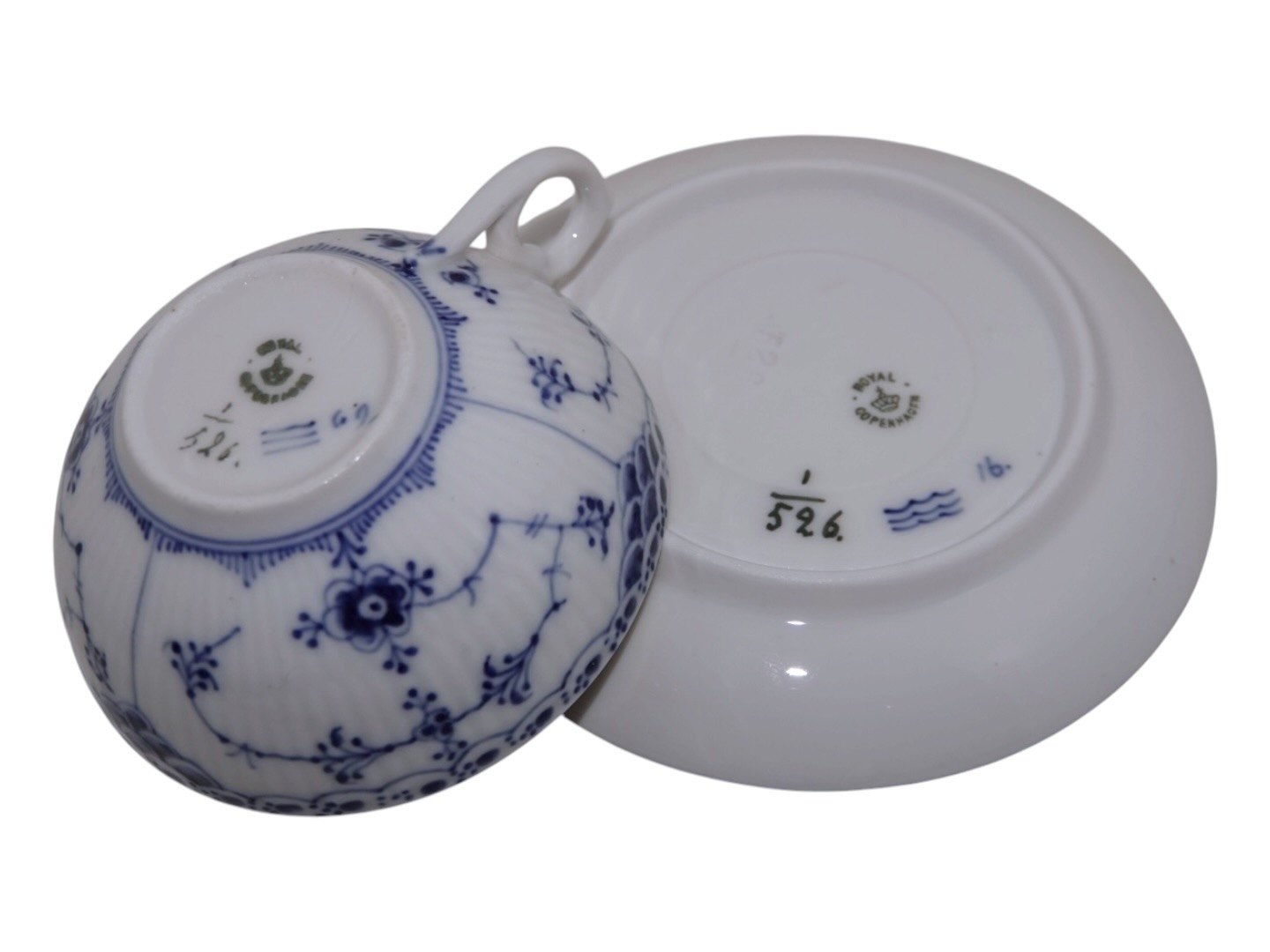 Royal Copenhagen Musselmalet Halvblonde, lille chokoladekop med tilhørende underkop.