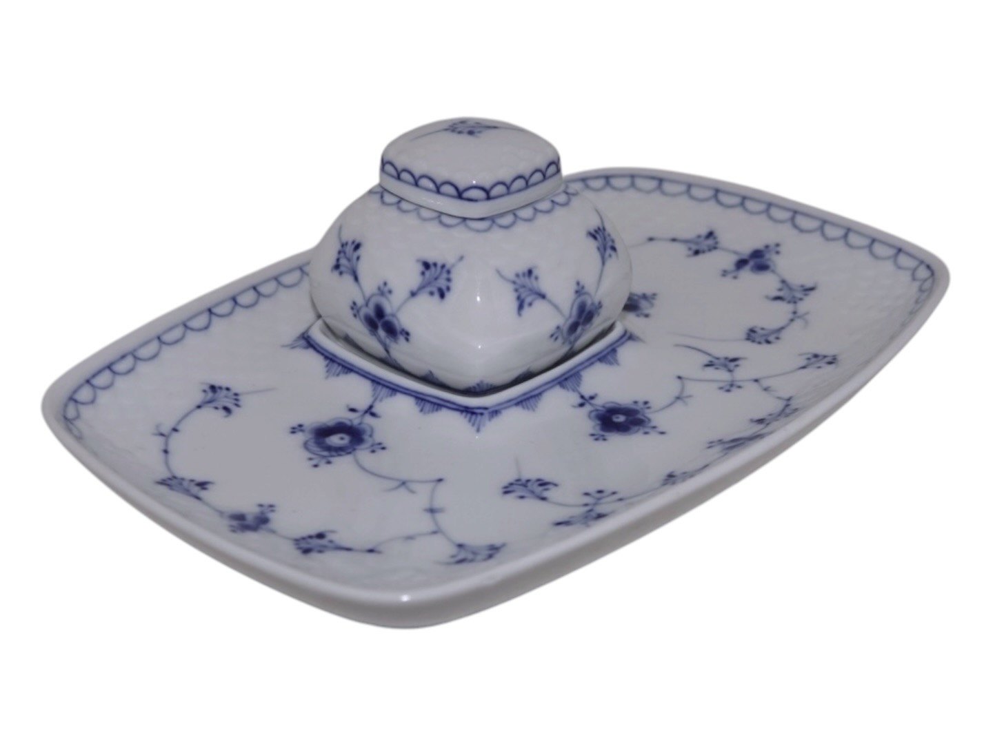 Bing & Grøndahl Blåmalet (Musselmalet), sjældent blækhus med tragt.