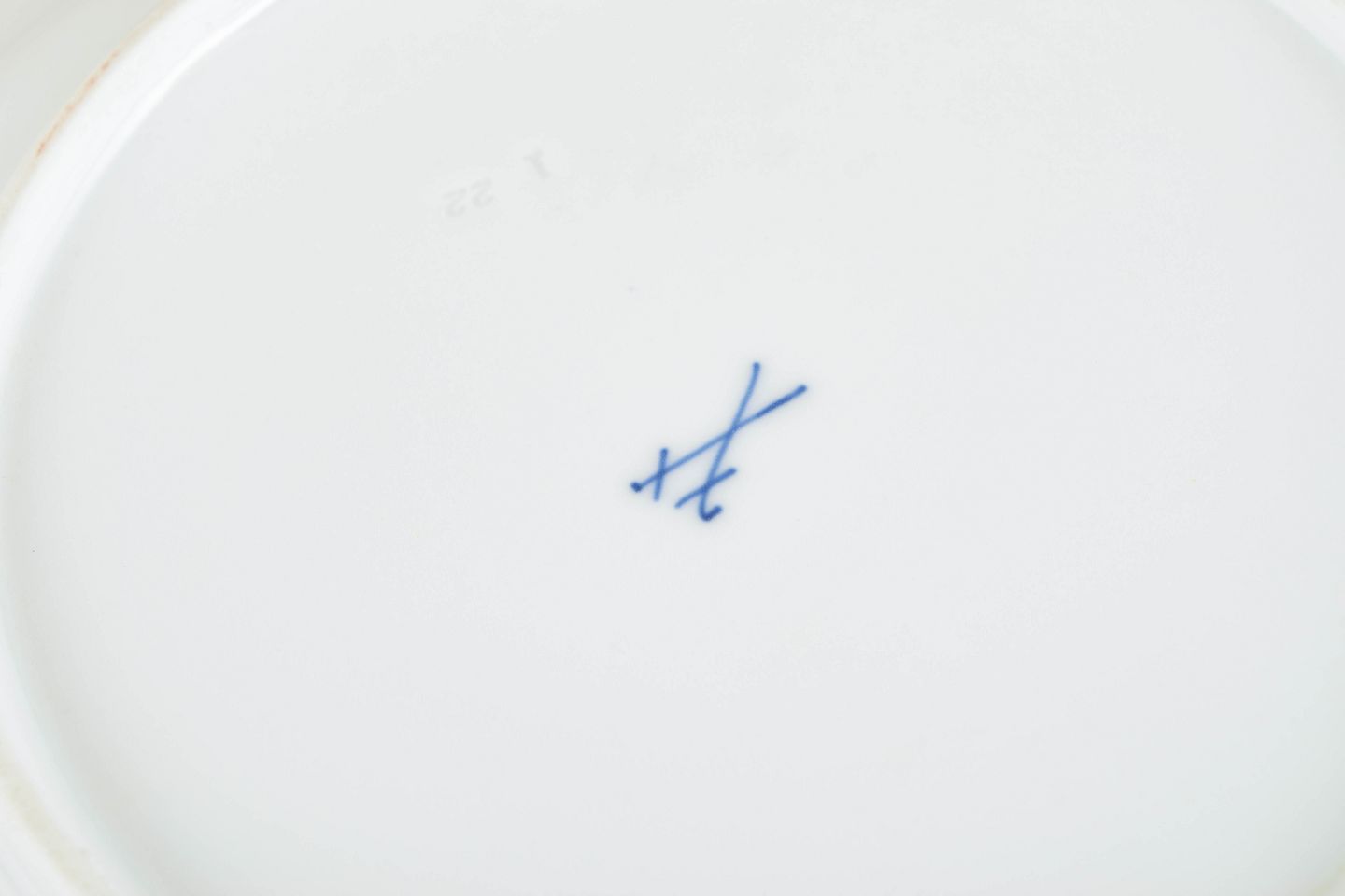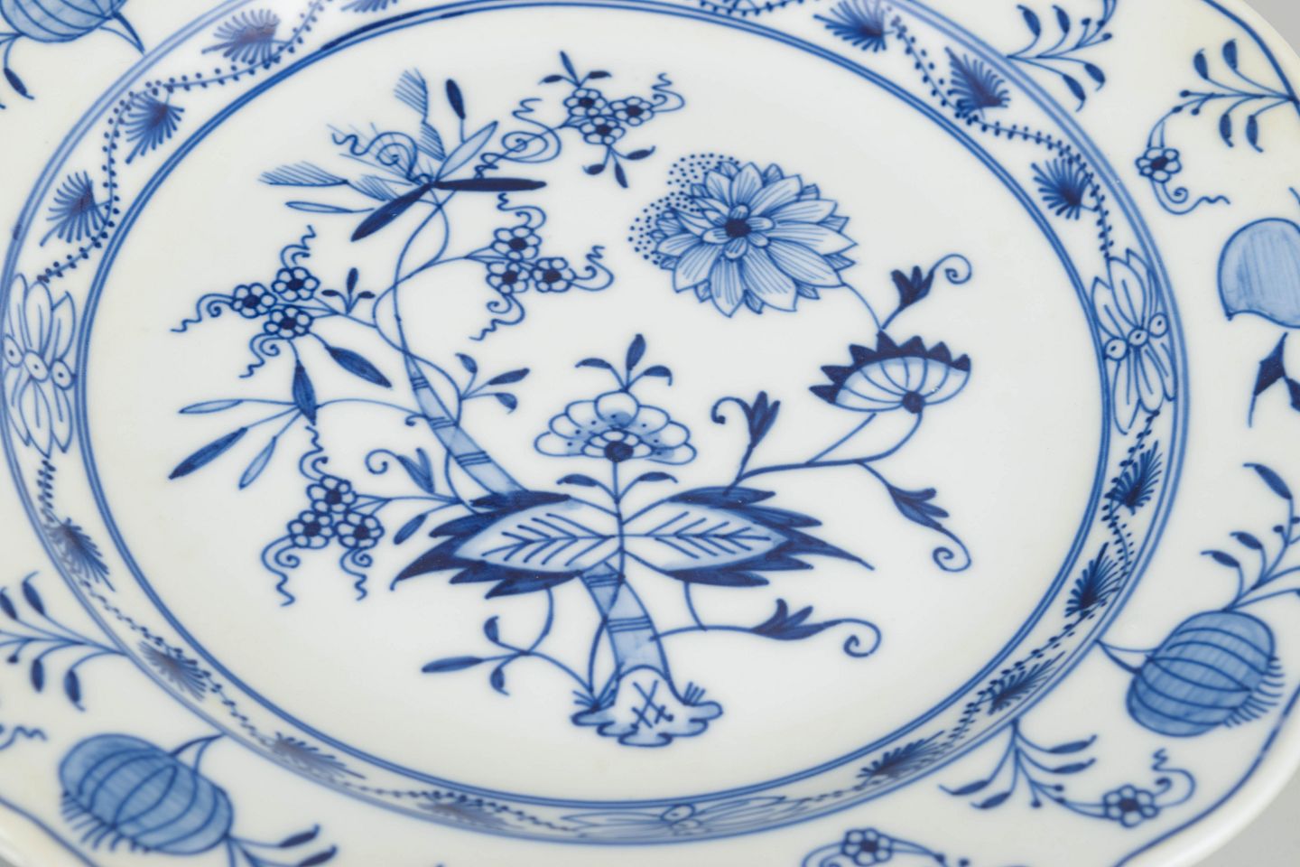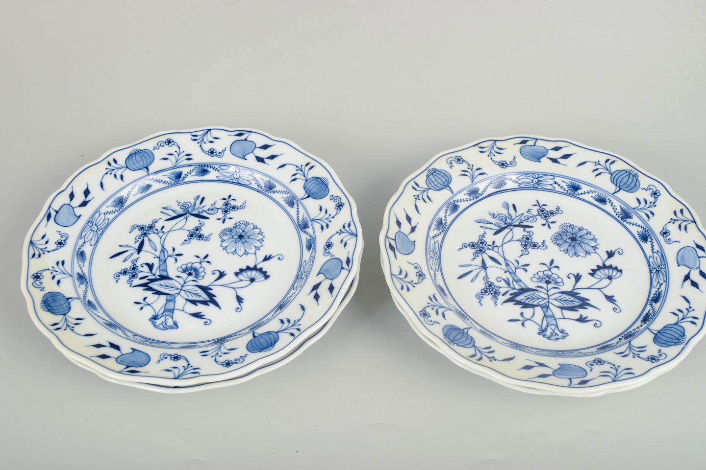 Text zugänglich auf Dänische: Meissen løgmønster, sæt af fire middagstallerkener.