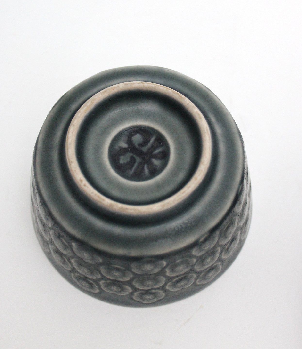 Text zugänglich auf Dänische: Kronjyden/Nissen/Bing & Grøndahl, Azur. Designet af Jens Harald Quistgaard. Sukkerskål. Højde 5,5 cm. Diameter 9 cm. Flot stand, mint condition. Ingen krakeleringer. Pris: 375 kr. Lager: 1