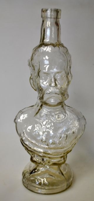 Porträtflasche aus Klarglas. 20. Jahrhundert. Darstellung von König Viktor Emanuel III. von Italien. Höhe: 32 cm.