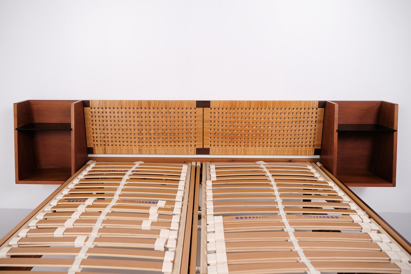 Hans J. Wegner Doppelbett Modell GE 701 aus Teak mit Wiener Geflecht für Getama, 1950er Jahre