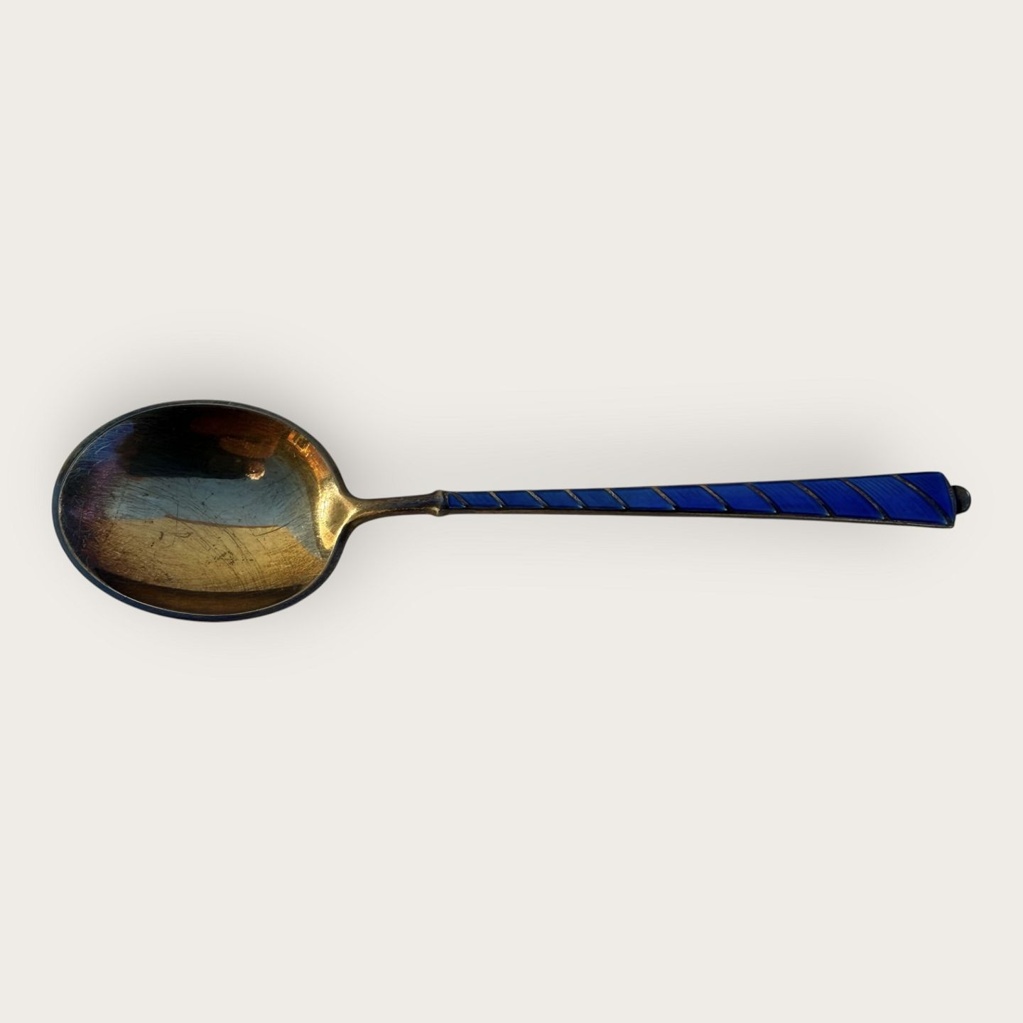 Löffel / Zuckerlöffel, Emaille und vergoldetes Sterlingsilber, gestempelt: Ela Sterling 925S, für Egon Lauridsen, 13 cm lang *Guter Zustand*