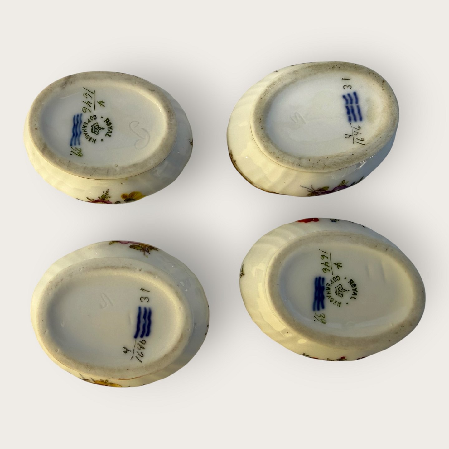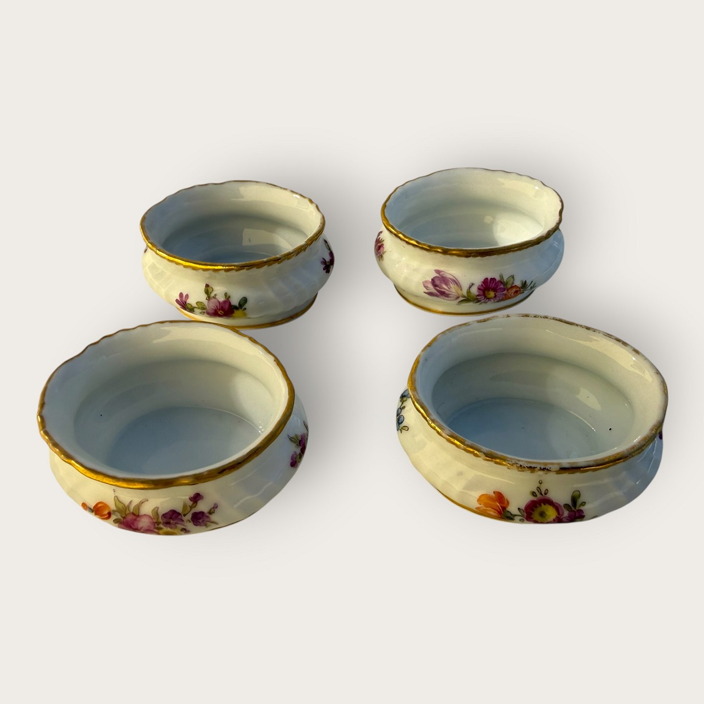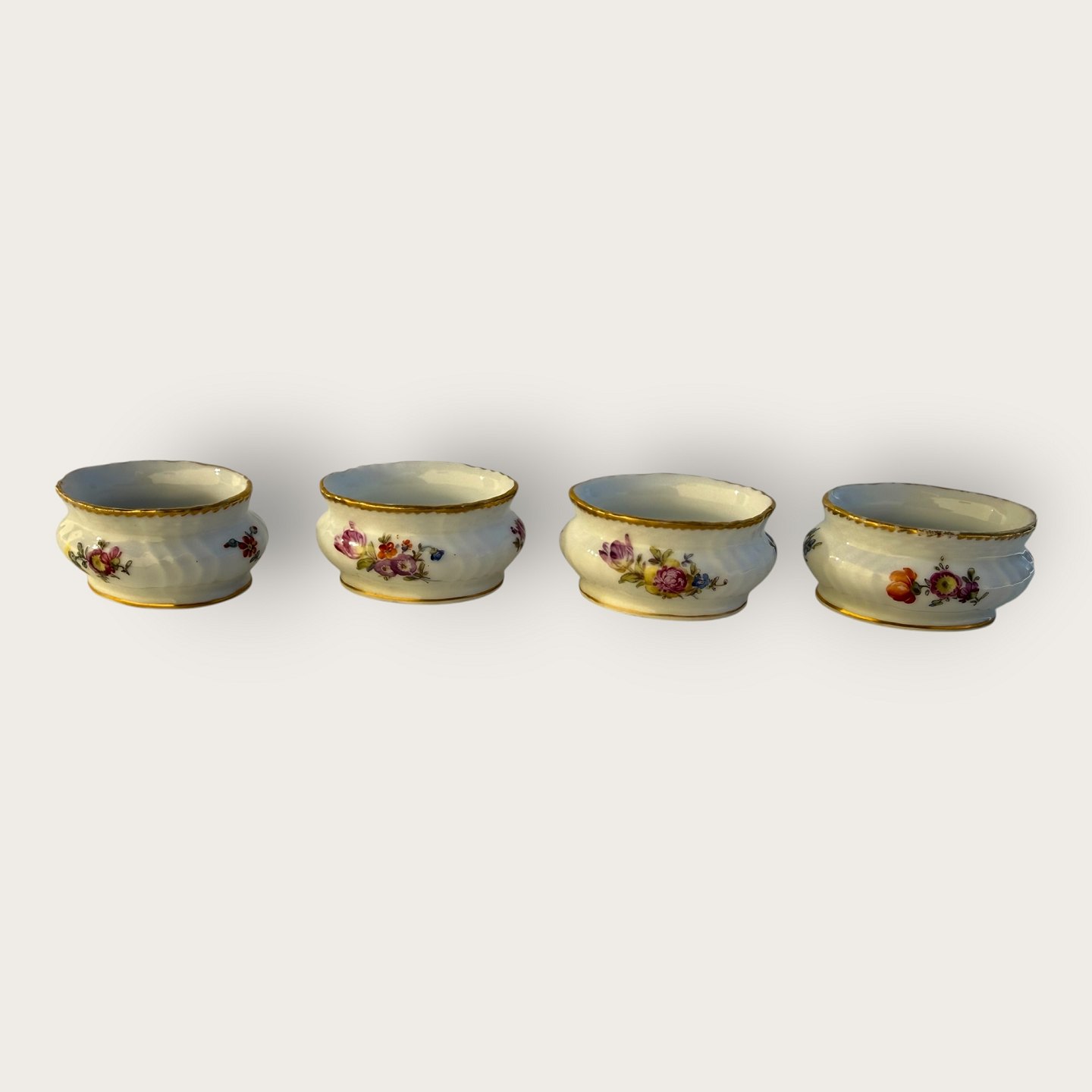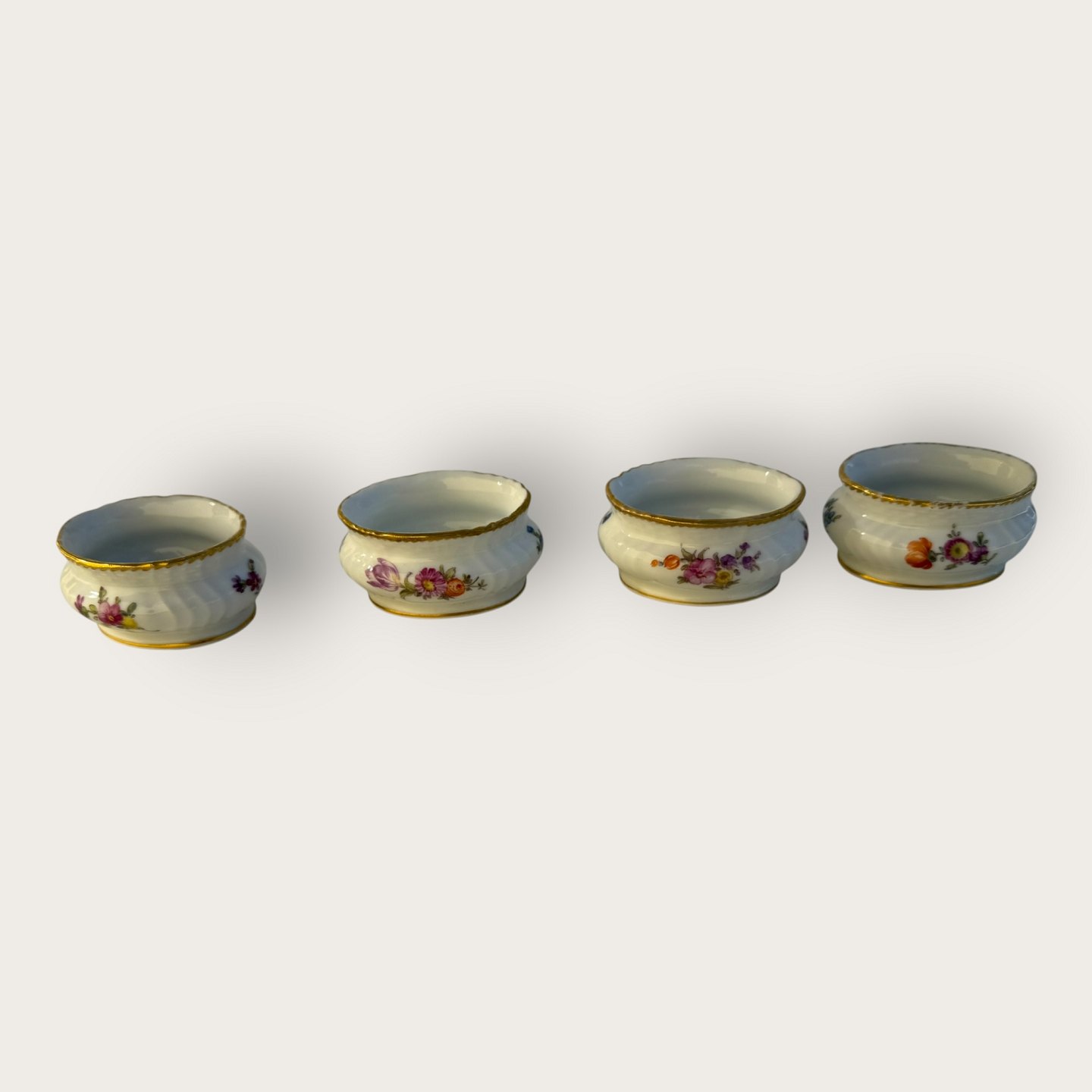 Royal Copenhagen, Vollsächsische Blume, kleine Salzschale, Nr. 4/1646, Maße: 6x3cm *Eines mit leichten Gebrauchsspuren am Goldrand, sonst in gutem Zustand*