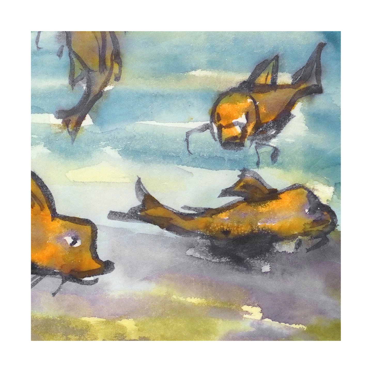 Emil Nolde Aquarell. Emil Nolde, 1867-1956, Aquarell mit Darstellung von vier Fischen