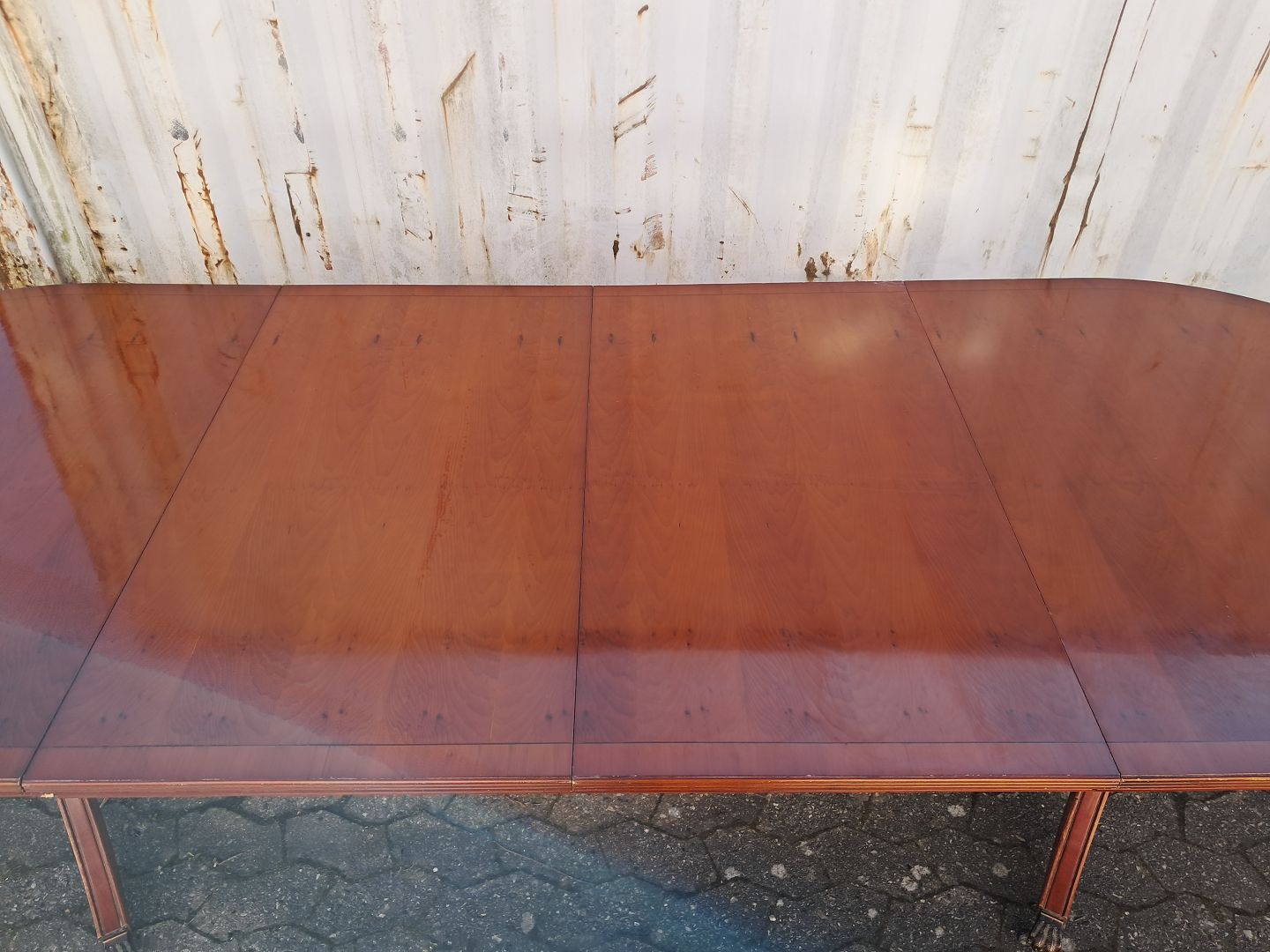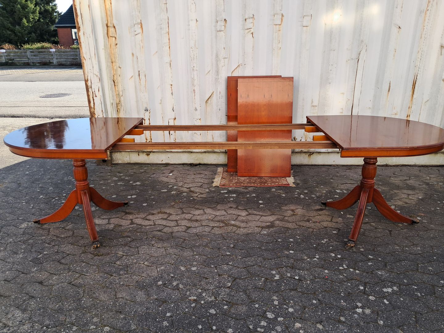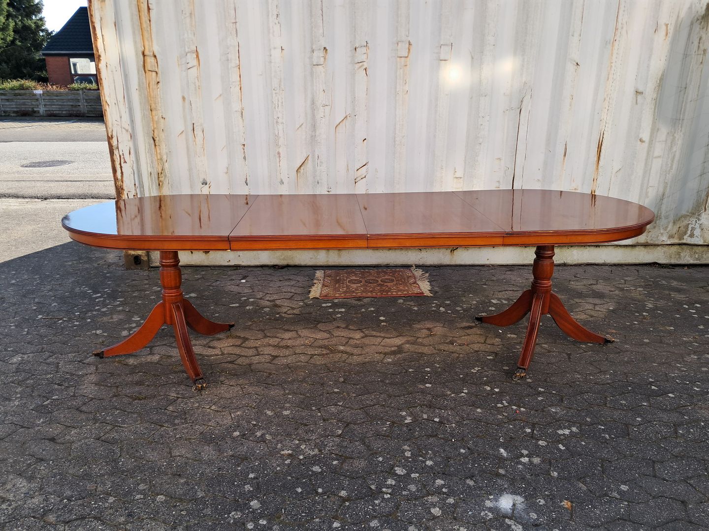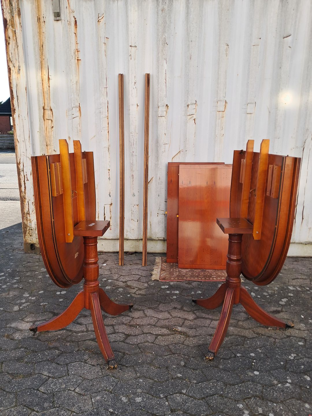 Text zugänglich auf Dänische: Two pillar table i fineret mahogni, fra 1990erne.