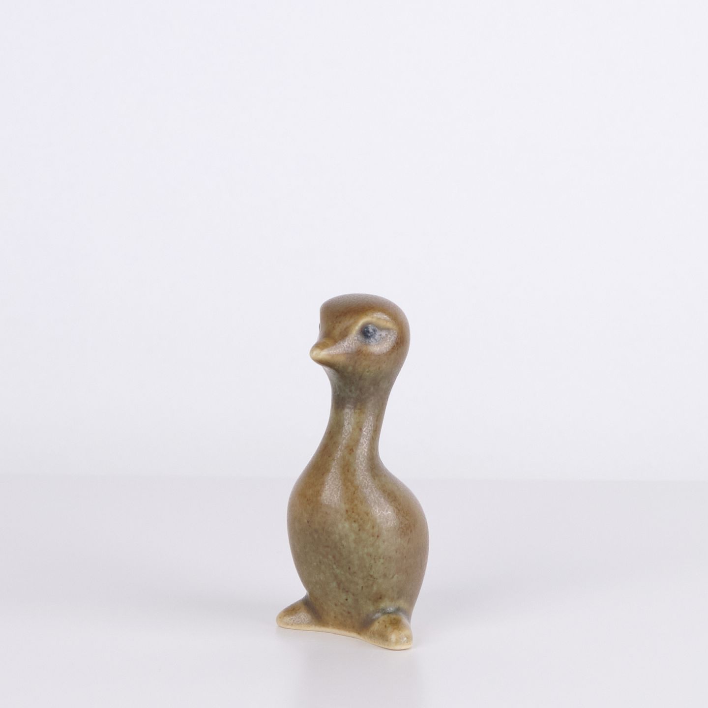 Vogelfigur von Knud Basse aus glasierter Keramik. Das Modell hat eine organische Formensprache mit langem Hals und stilisiertem Ausdruck, typisch für Knud Basses beliebte Tierfiguren. Dänische Kunstkeramik und Sammlerstück aus der Mid-Century-Periode. Knud Basse ist besonders bekannt für keramische Tierfiguren, vor allem Vogelmotive.