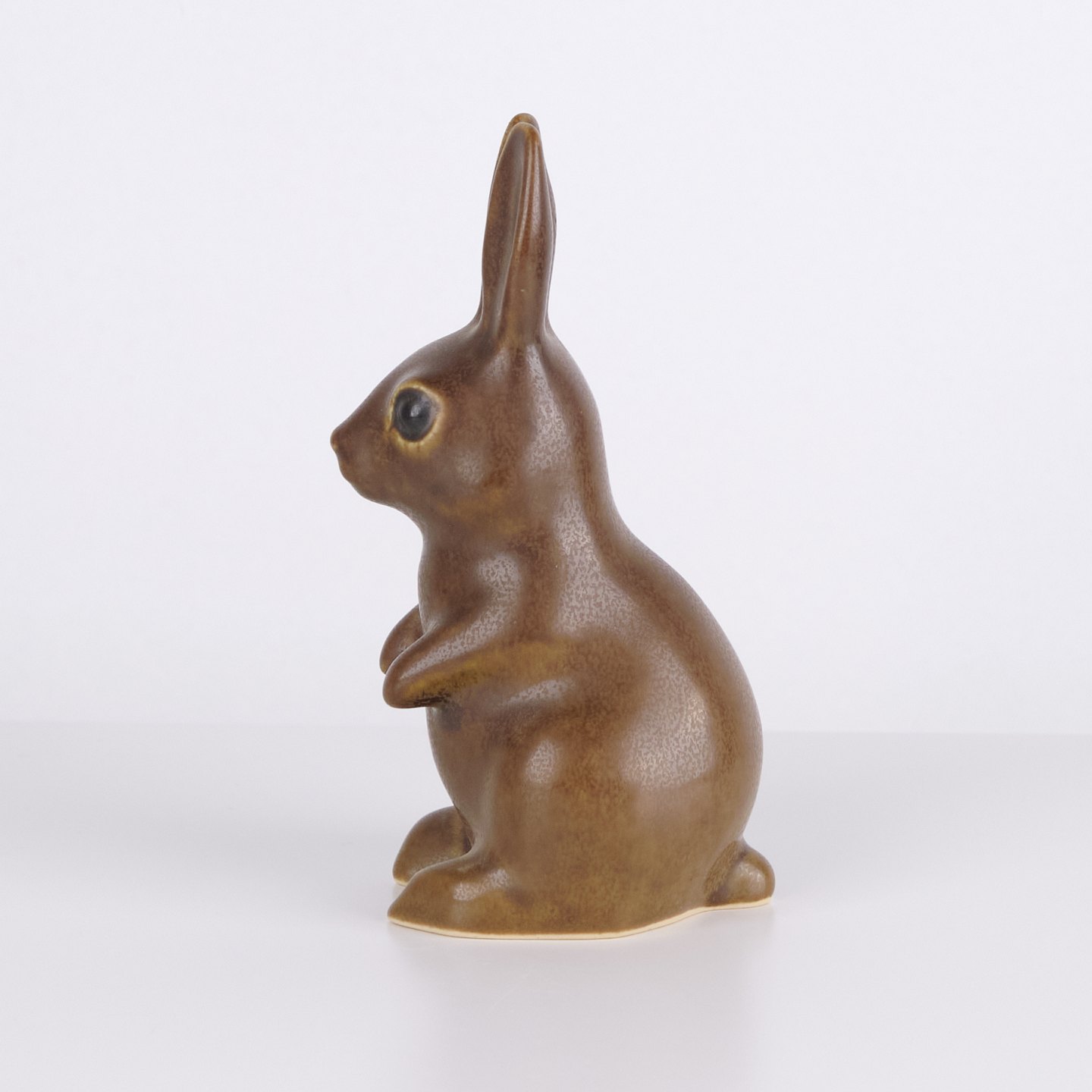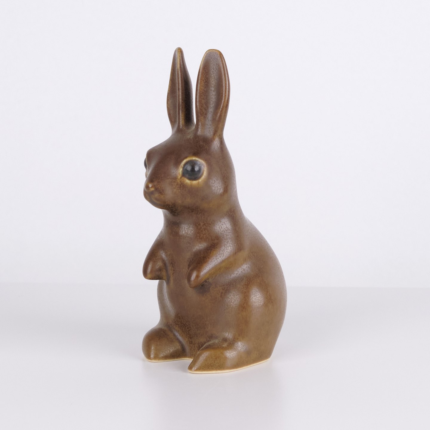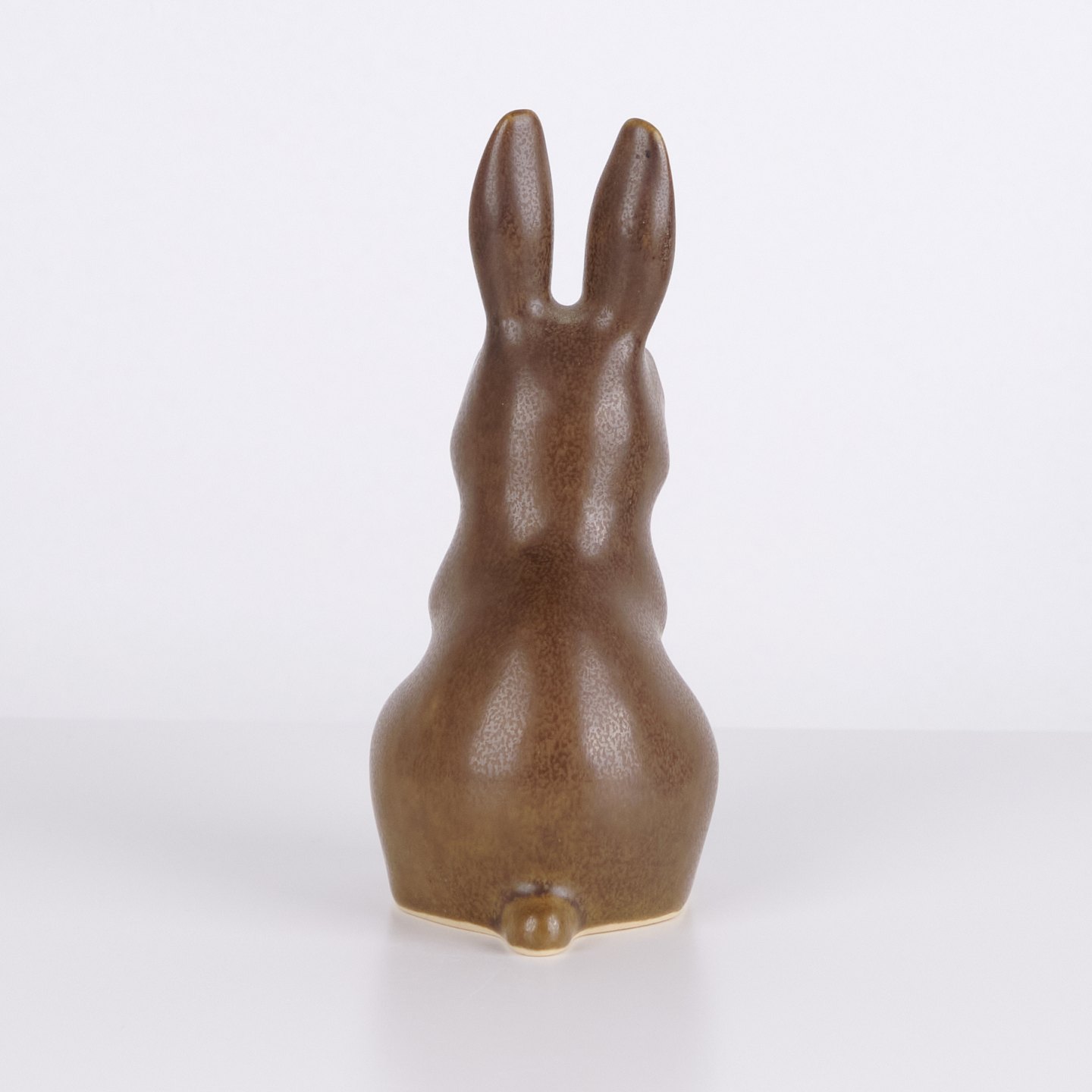 Große Hasenfigur von Knud Basse aus braun glasierter Keramik. Die Figur ist in aufrecht sitzender Form mit langen Ohren und fein handgemalten Augen modelliert.