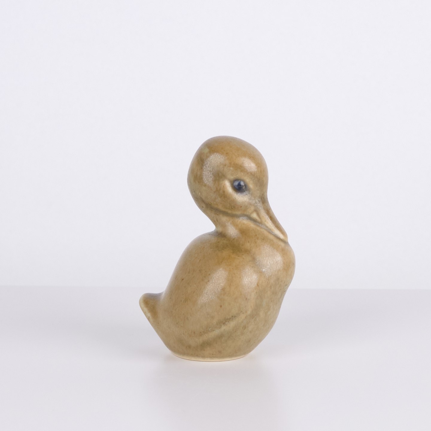 Entenfigur von Knud Basse aus glasierter Keramik. Die Figur wurde in den 1960er Jahren in Dänemark hergestellt. Knud Basse ist bekannt für keramische Tierfiguren mit Vogel- und Naturmotiven aus dieser Zeit.