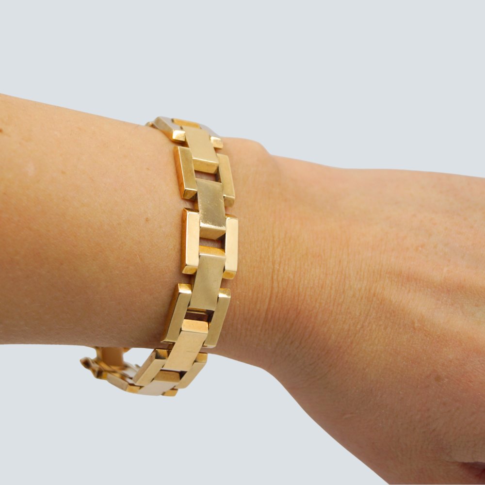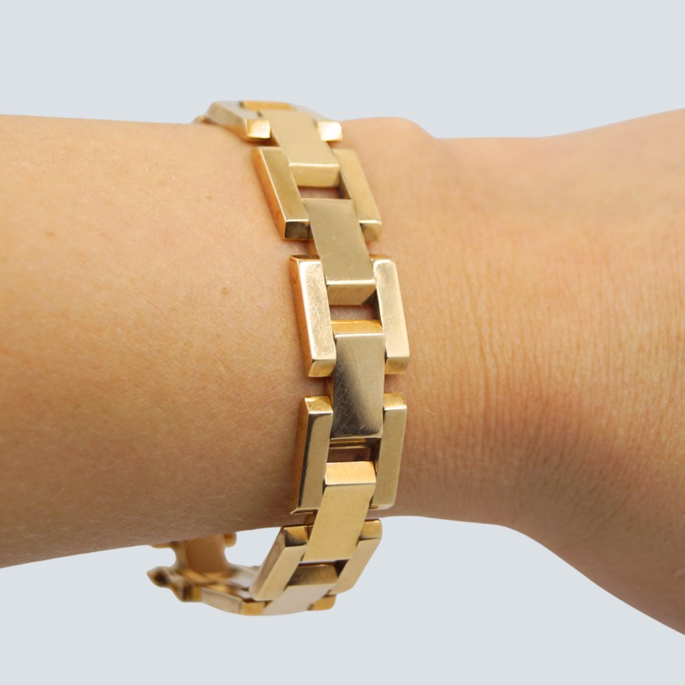 Text zugänglich auf Dänische: Blok armbånd af 14 kt. guld.