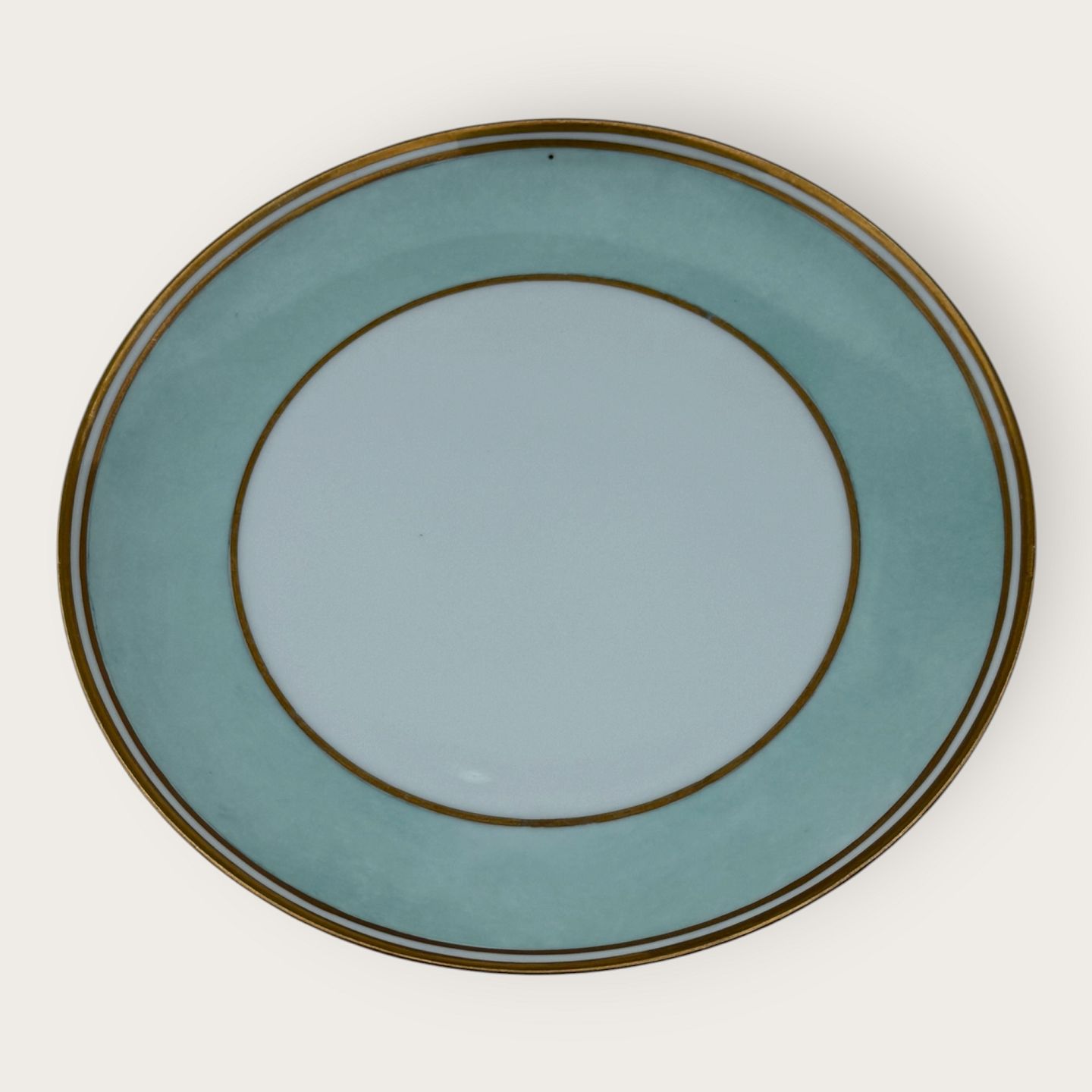 | Bing & Grondahl, Form 643 mit breitem türkisfarbenem Dekor und Goldrand, Speiseteller, Nr. 26, Durchmesser 20,5 cm, 2. Wahl, *guter Zustand*