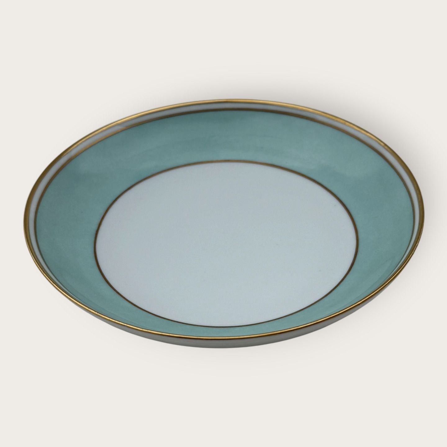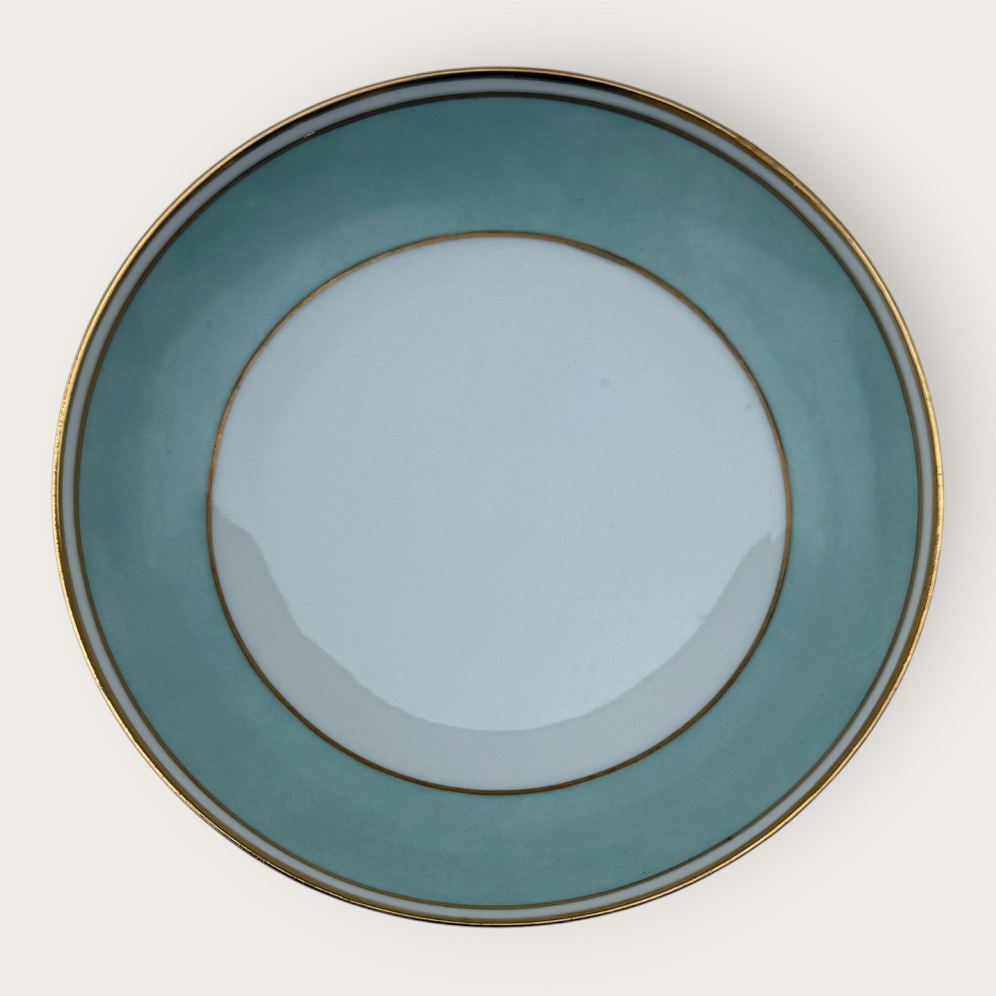 Bing & Grondahl, Form 643 mit breitem türkisfarbenem Dekor und Goldrand, kleiner tiefer Teller/Schale, Durchmesser 17,5 cm, Höhe 3,5 cm, 1. Wahl, *guter Zustand*