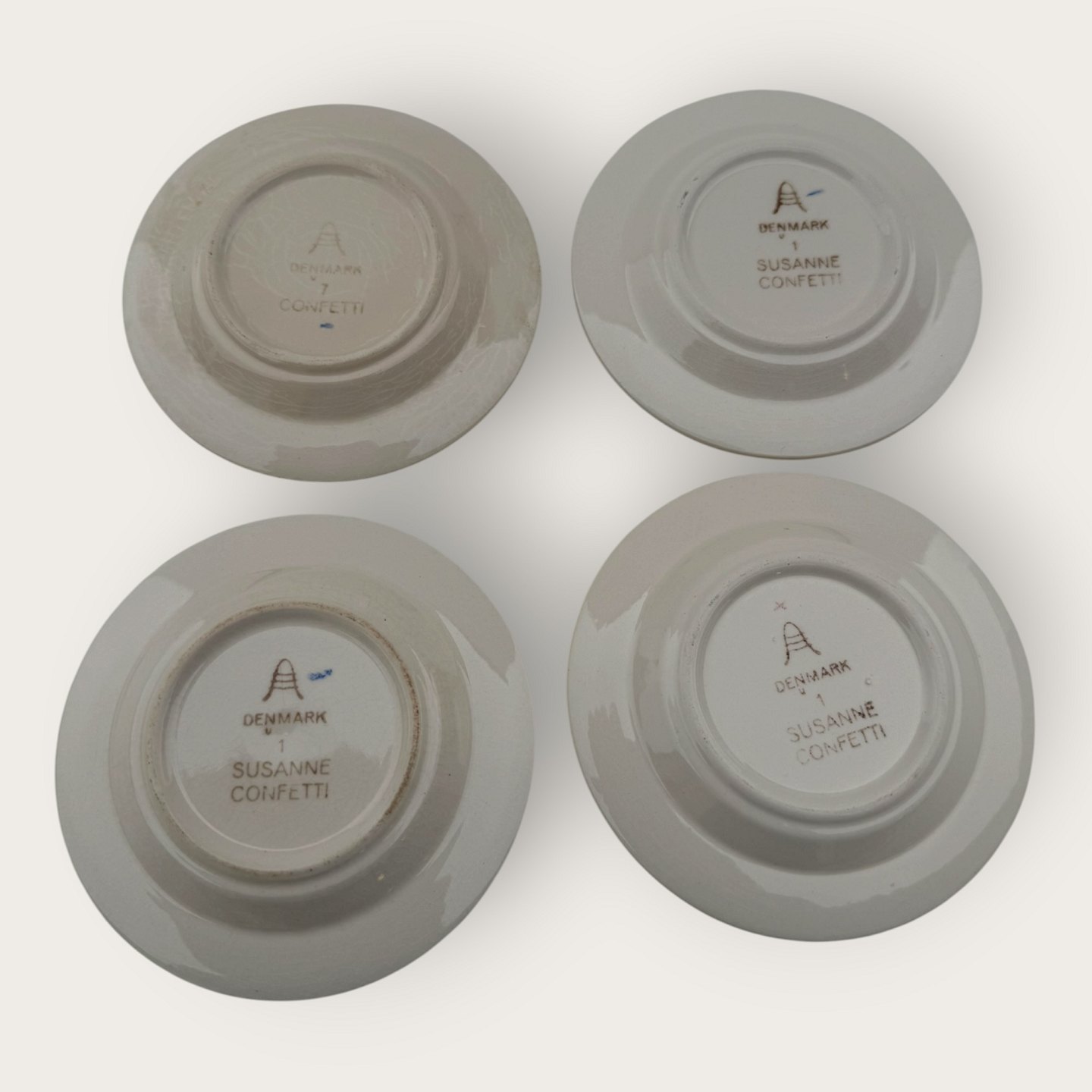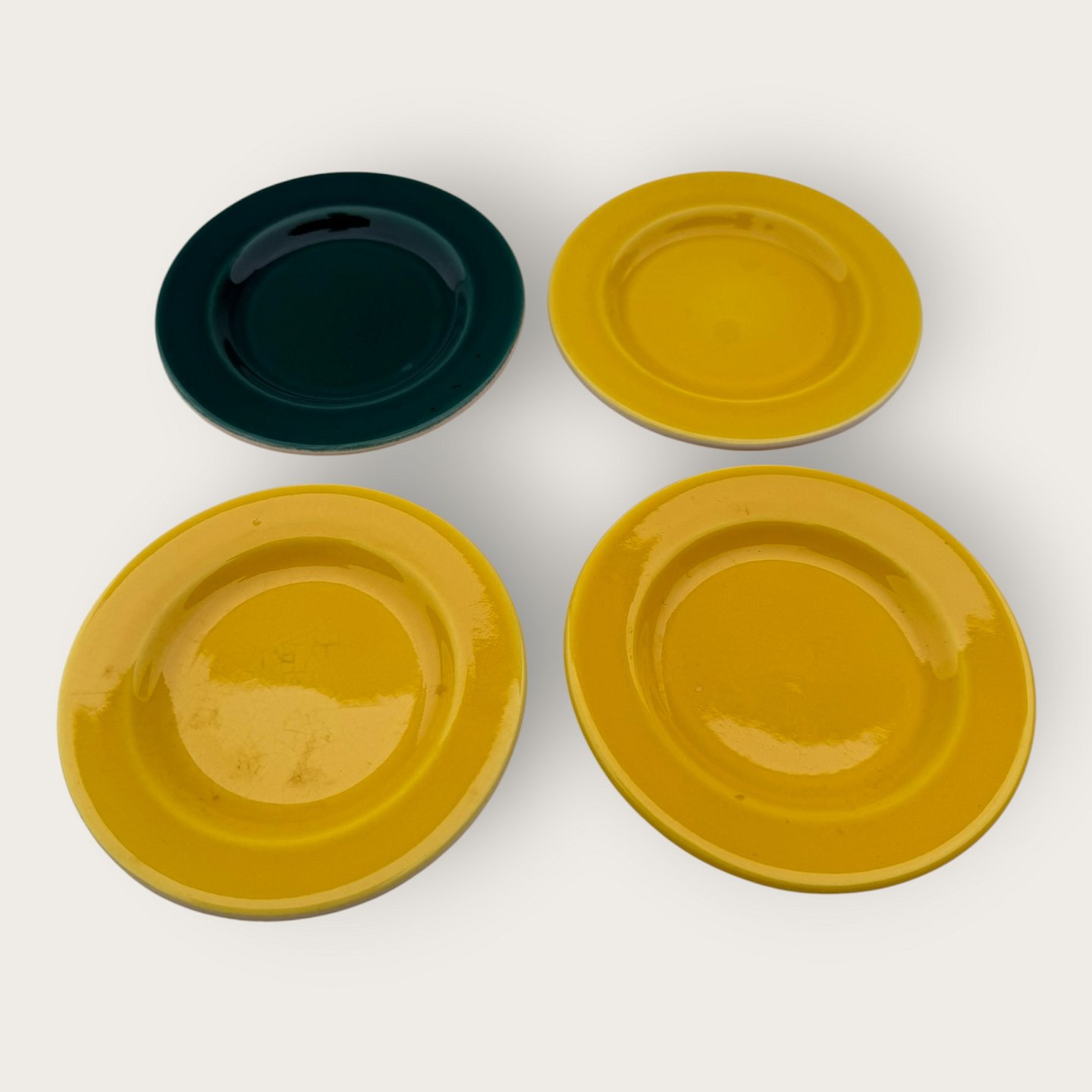 | Royal Copenhagen, Aluminia, Confetti / Susanne, 4 kleine Teller, Gelb und Grün, 9,5 cm Durchmesser *guter gebrauchter Zustand*