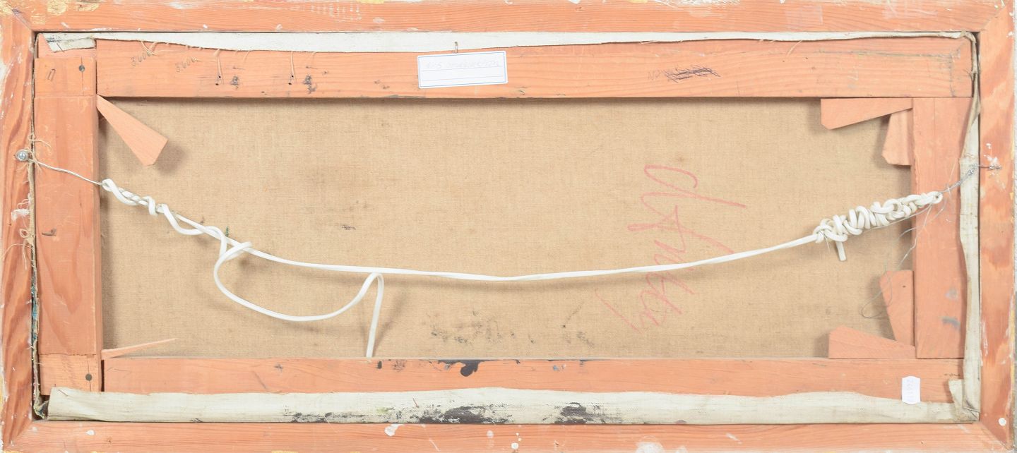 Ekspressivt landskab med bebyggelse og vand udført i kraftig, gestisk penselføring og tyk farvepåføring. Kompositionen har et abstrakt præg med klare farvekontraster og dynamisk struktur. Signeret.