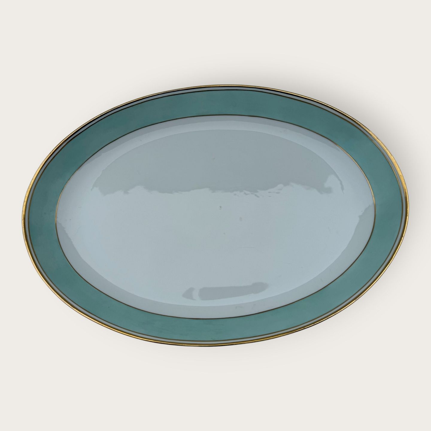 | Bing & Grondahl, Form 643 mit breitem türkisfarbenem Dekor und Goldrand, große Servierplatte, 46 x 33 cm, 2. Wahl, *guter Zustand*