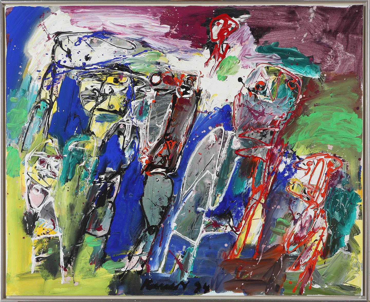 Cobra komposition, olie maleri på lærred i sølv svæveramme.