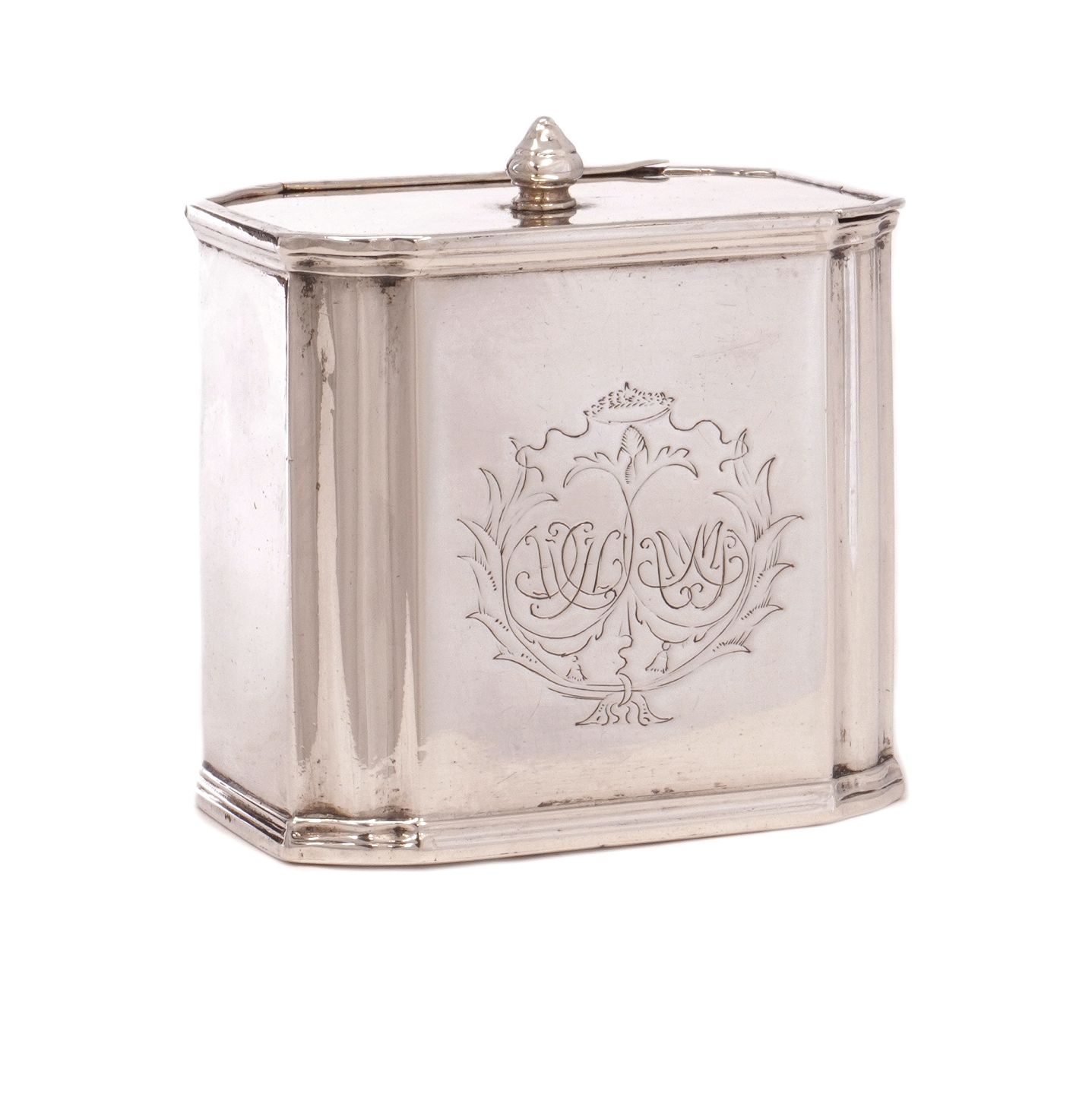 Regence Teedose aus Silber von Johan Mehl, Viborg, 1725-65