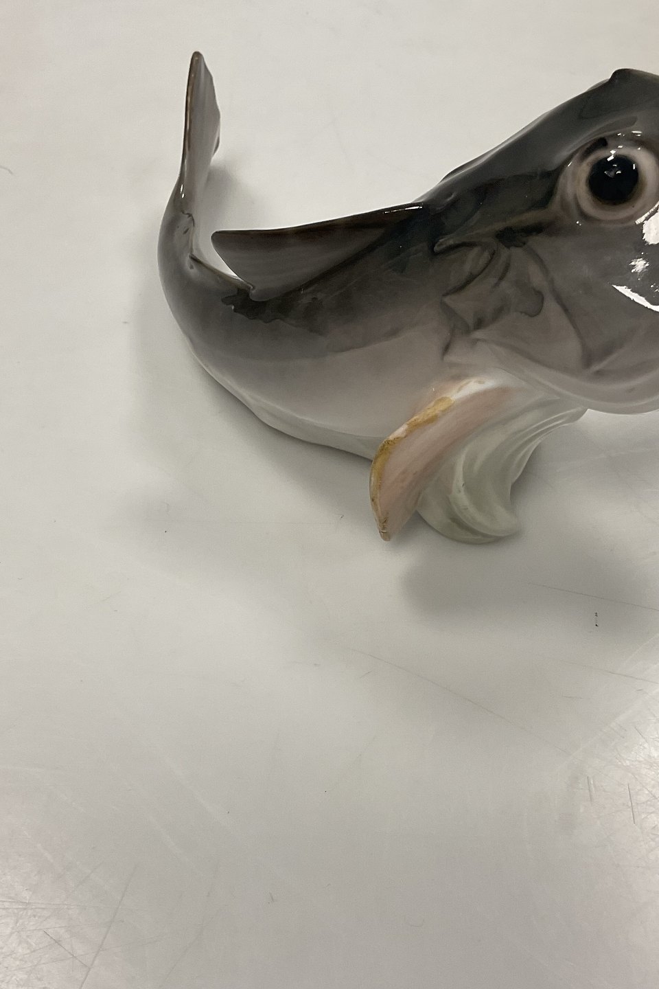 Royal Copenhagen Art Nouveau Figur i form af Torsk med åben mund No 286