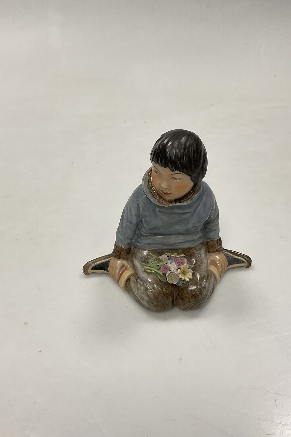 Royal Copenhagen Figur i Overglasur - Dreng med blomster fra Grønland No. 12419
