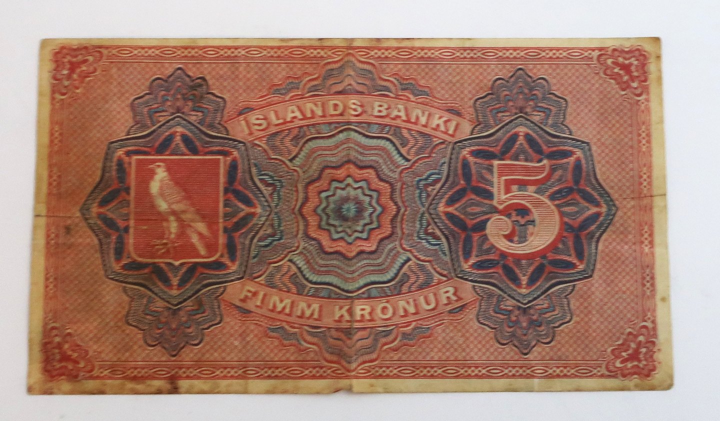 Island. Christian lX. 10-Kronen-Banknote 1904. Riss in der Mitte.