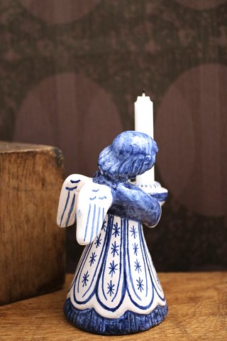 L. Hjorth keramik engel med blå glasur