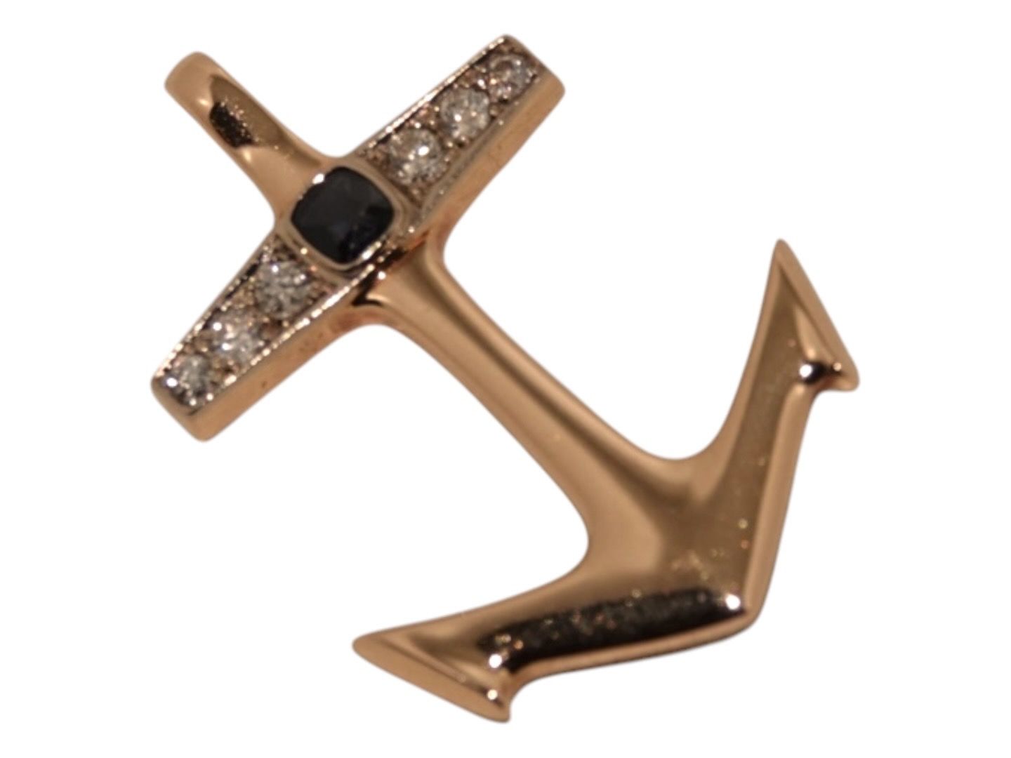 Stort vedhæng / broche i form af anker med en ret stor safir og seks store diamanter