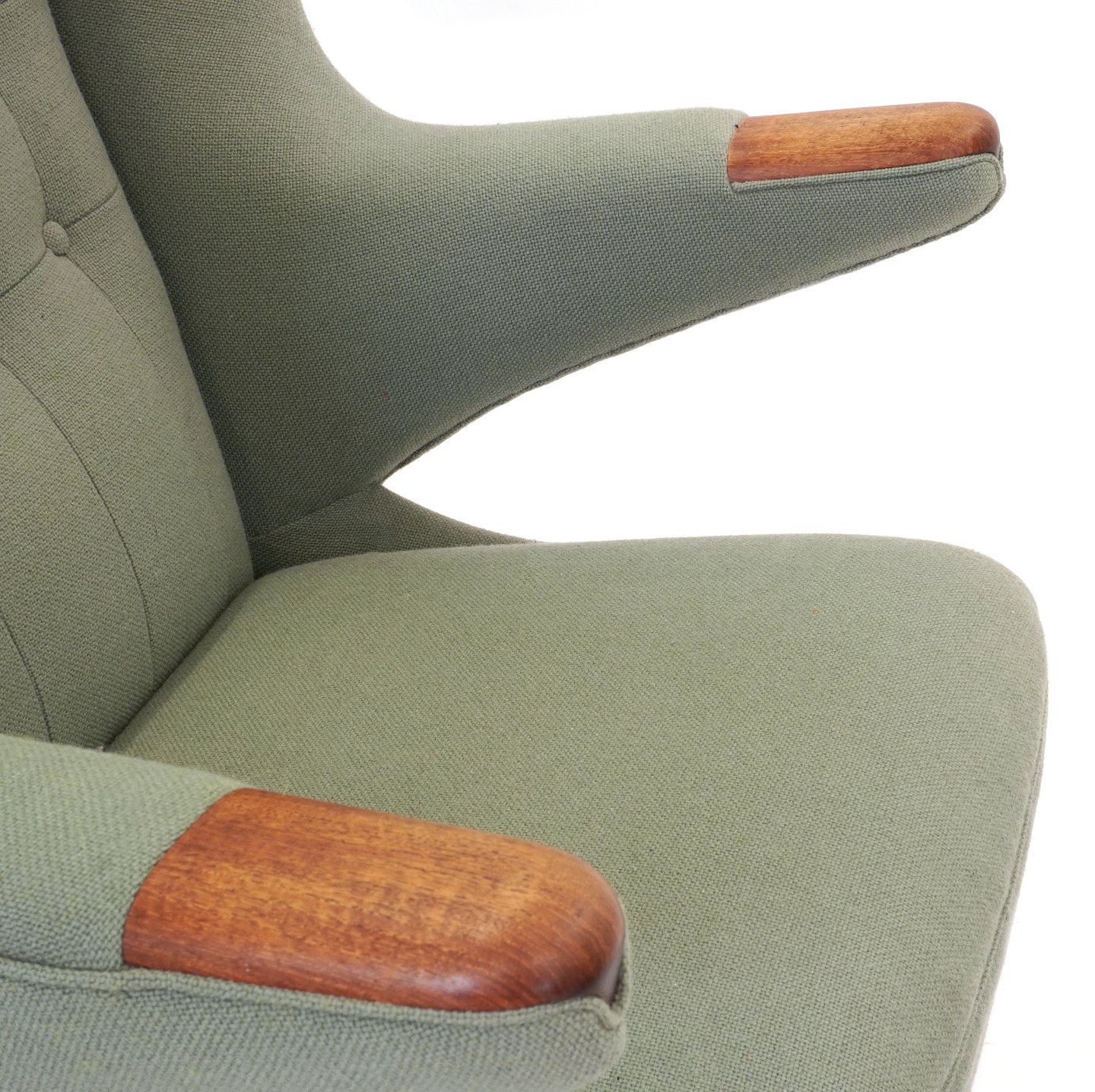 Hans J. Wegner "Papa Bear"-Stuhl mit Fussbank. Beide aus Teak. AP19 und AP29. Gut erhalten. Kleine Gebrauchsspuren