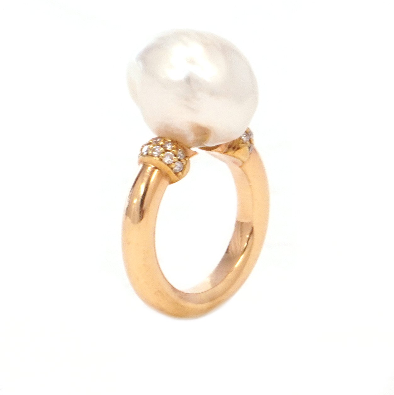 Benny Holmsted, Kopenhagen, 1989-2001, Ring aus 14kt Gold mit Perle. Ringgr. 50