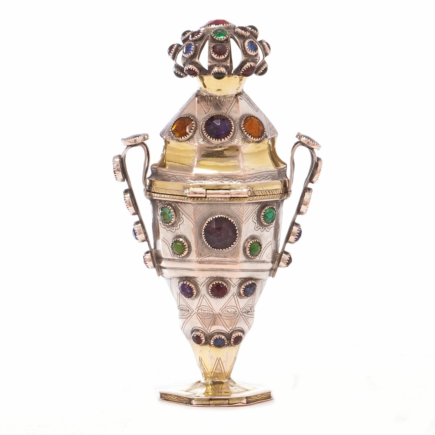 Riechdose aus Silber mit 63 Glassteinen. Hergstellt von Reimar Diedrich Dethlefsen, Sonderborg, um 1830. H: 13cm |