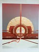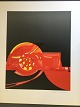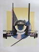Farvelitografi af Finn Lohmann - Komposition 1976.