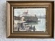 Maleri af Gunner Bundgaard - Havneparti med både.