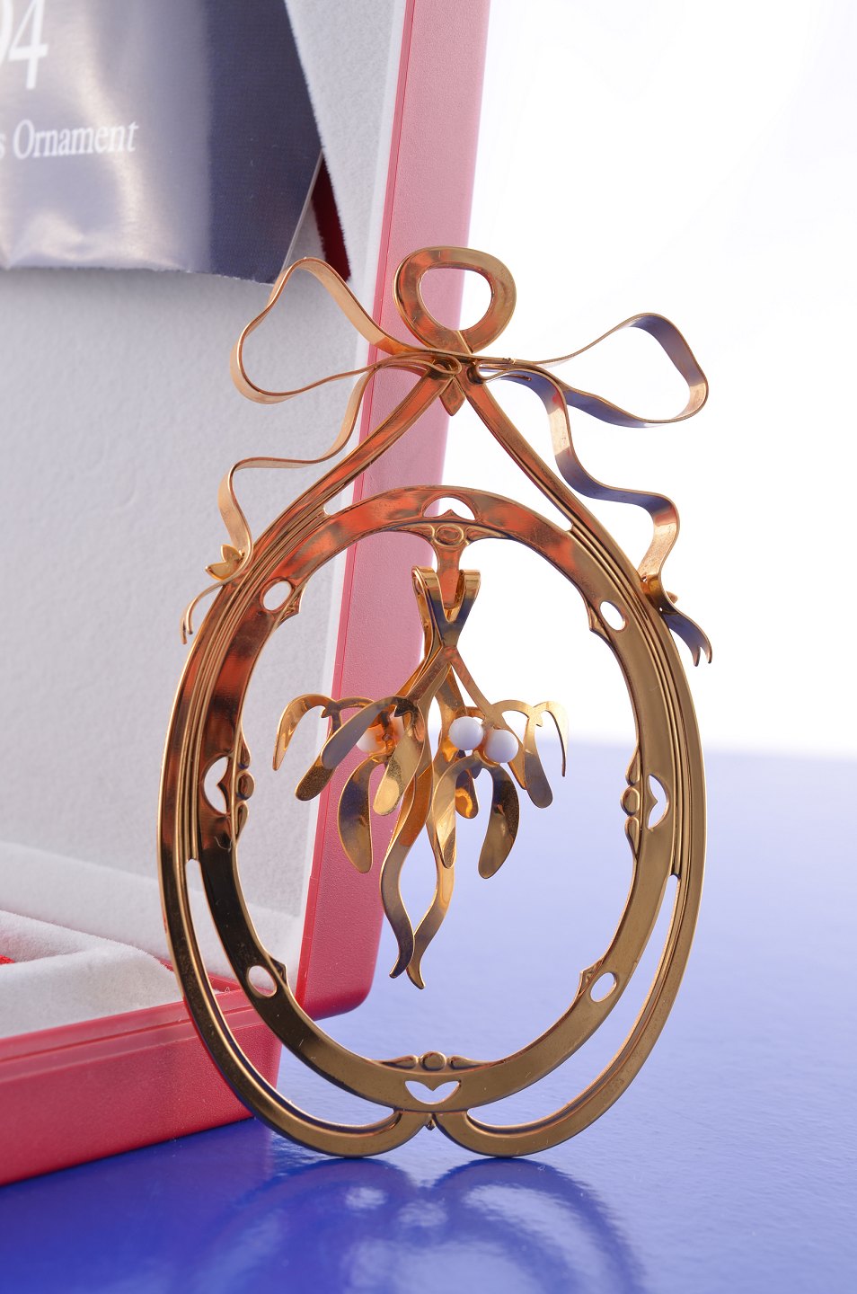 Georg Jensen Weihnachtsmobile 1994, Mistelzweig vergoldet messing. Design : Jette Frölicb. Tadelloser Zustand, mit Box.