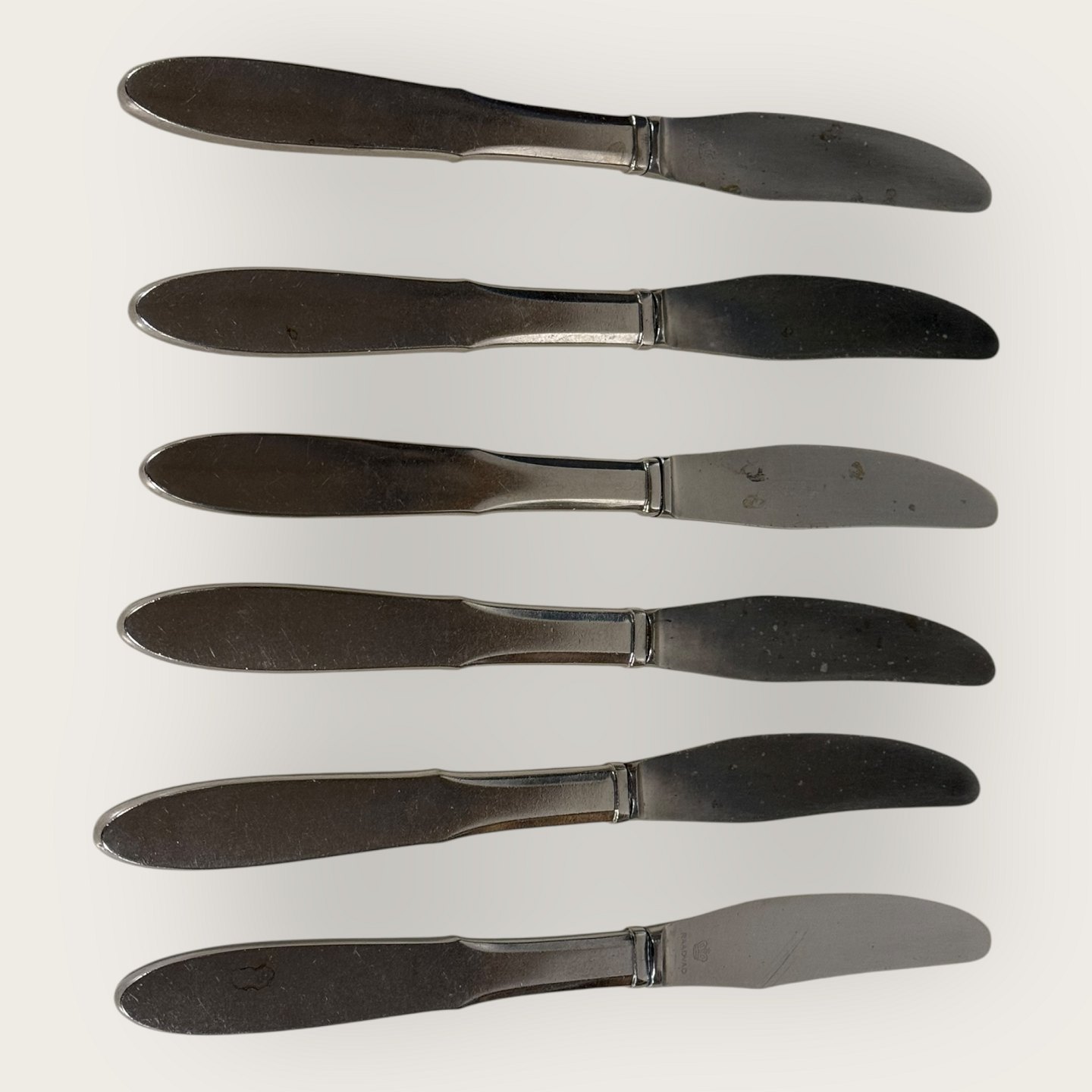 Mitra, Georg Jensen, Stahlbesteck, Tafelmesser, 23cm lang, Design Gundorph Albertus *Mit einigen Gebrauchsspuren*