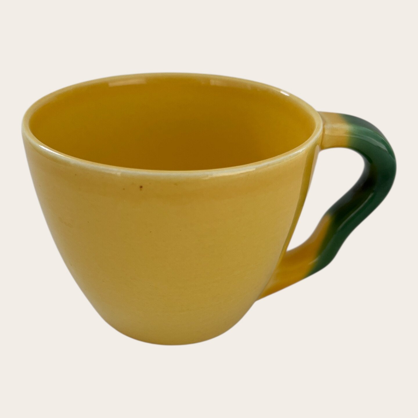 Royal Copenhagen, Aluminia, Ursula, Kaffeetasse Gelb/Grün Nr. 072, 1. Sortierung, 7 cm hoch, 10,5 cm breit, 8,5 cm Durchmesser, Design Ursula Munch Petersen *Guter Zustand*