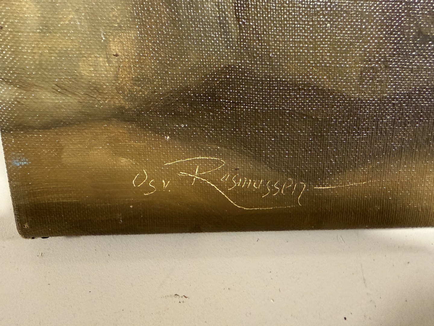 Osvald Rasmussen (1885-1972), Ungerahmtes Gemälde auf Leinwand mit Interieurs mit Kamin / Küche aus dem Jahr 1747, signiert Osv Rasmussen, Maße 49x39cm.