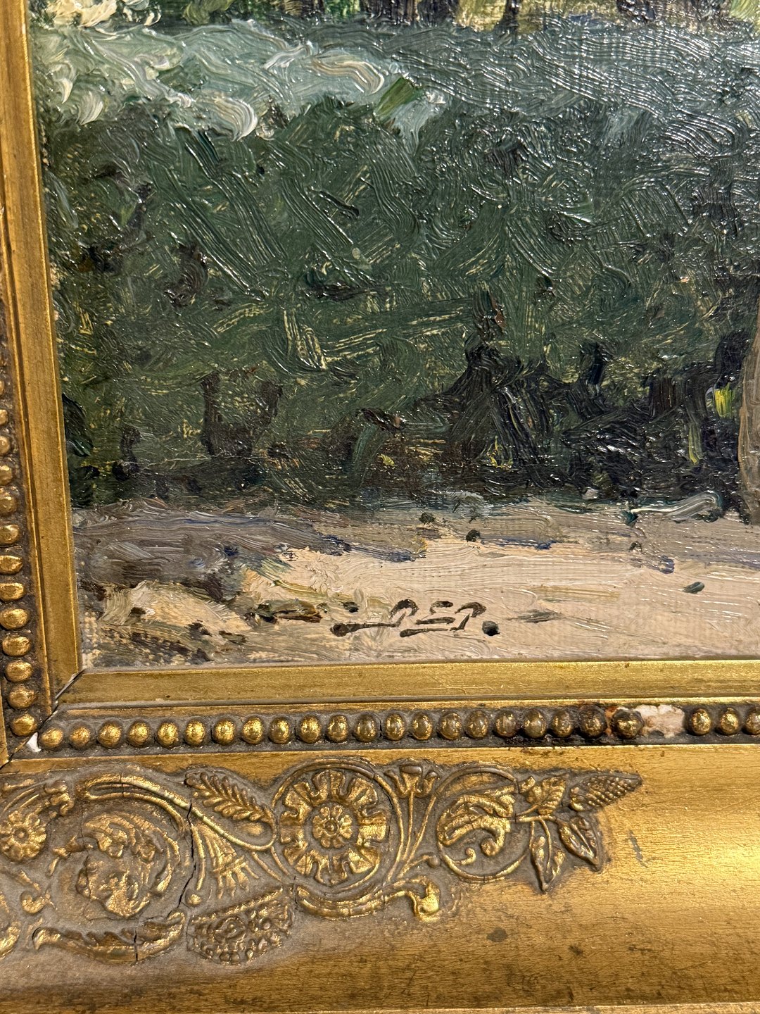 Peter Elias Petersen (1859–1950), Öl auf Leinwand, Motiv: Hinterhof, vermutlich aus Kopenhagen, signiert P.E.P. und bezeichnet P.E.Petersen 1922, Maße: 39 x 45 cm *Einige kleine Absplitterungen am Rahmen, ansonsten guter Zustand*
