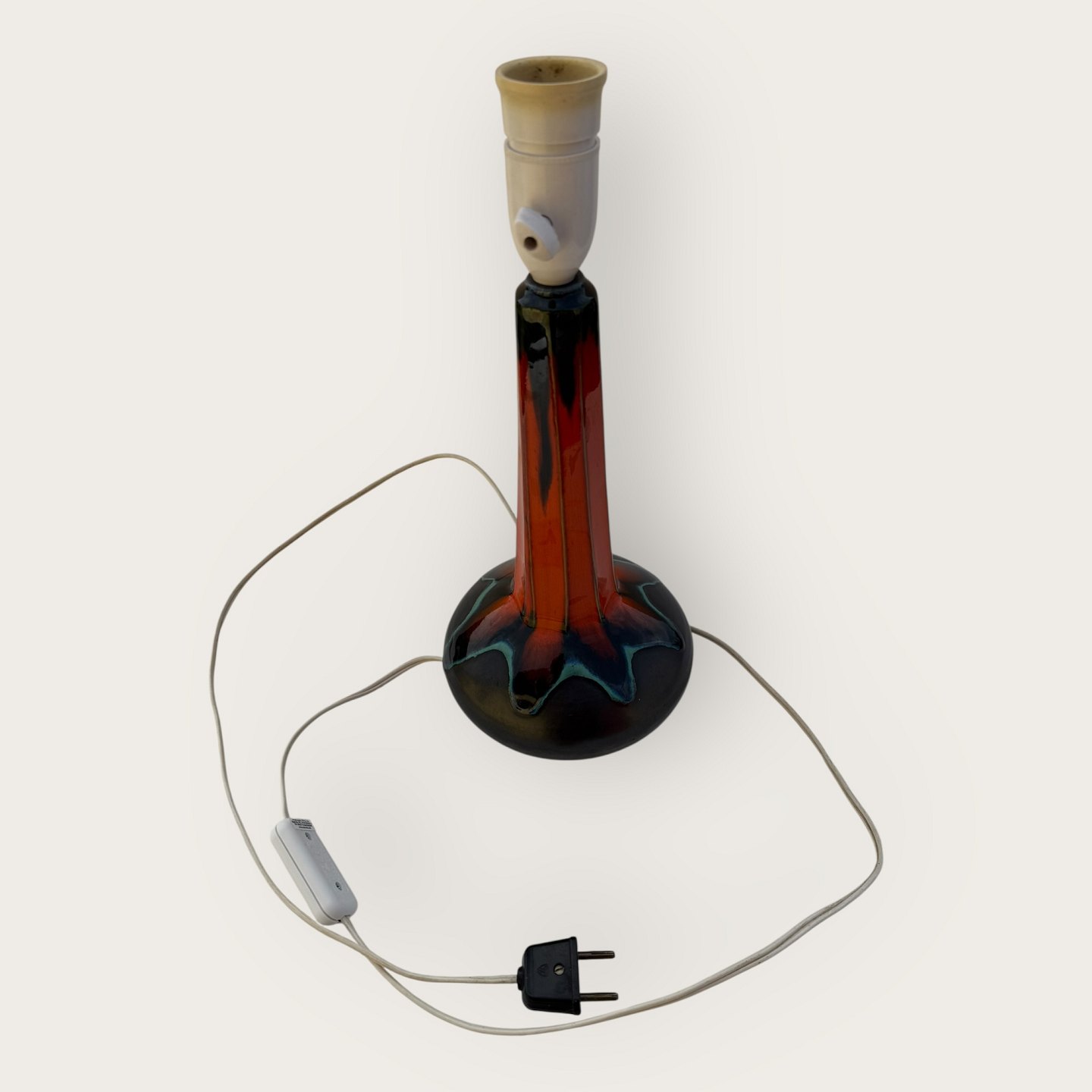 Ernst Faxe, Retro-Tischleuchte mit kräftiger orangefarbener Glasur, nicht signiert, Höhe mit Fassung ca. 36 cm *Guter Zustand*