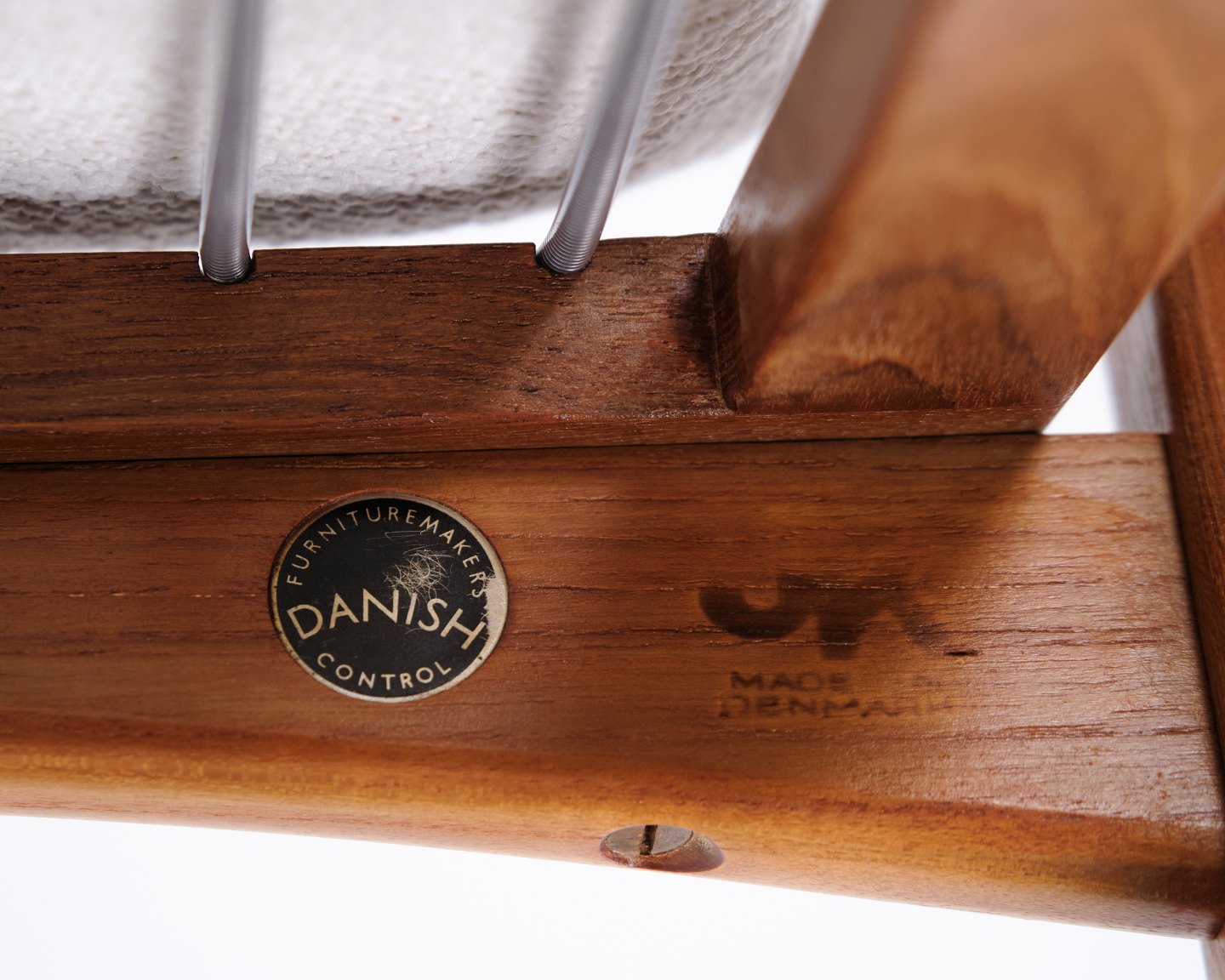 — Material: Teakholz und heller Stoff