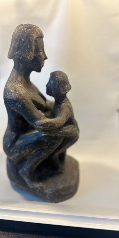 Eine berührende und solide Figur aus unglasiertem Steingut, die eine Mutter in enger Umarmung mit ihrem Kind darstellt. Aus den 1960er Jahren