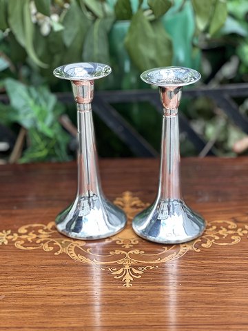 HEJL & CO. Solid silver (830) candlestick. Beautiful pair of minimalist candlesticks in solid 830 silver stamped Hejl, Fredericia. Danish design approx. 1960-1970 Elegant drum-shaped foot, timeless look. Very nice with light patina