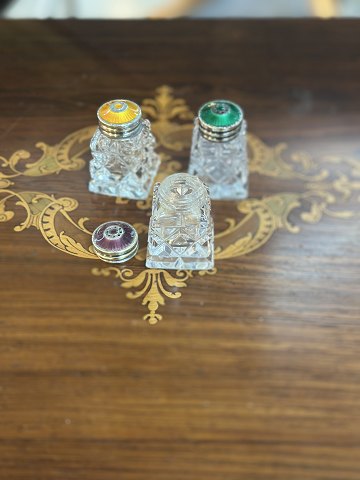 Kristallsalzstreuer, Sterlingsilber mit Emaille, Art Deco, 1920er Jahre, schöner und guter Zustand