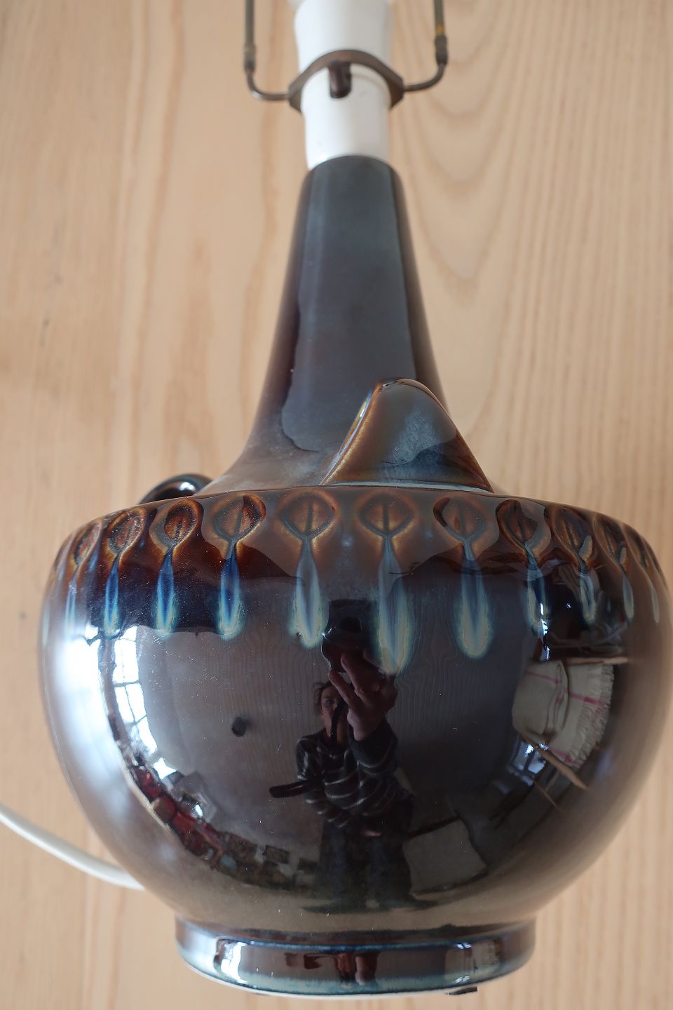 Schöne Tischlampe aus Steinzeug Søholm, Bornholm, Dänemark H: 29cm ohne Fassung Stempel 1059 In gutem Zustand Warennr.: KL1005