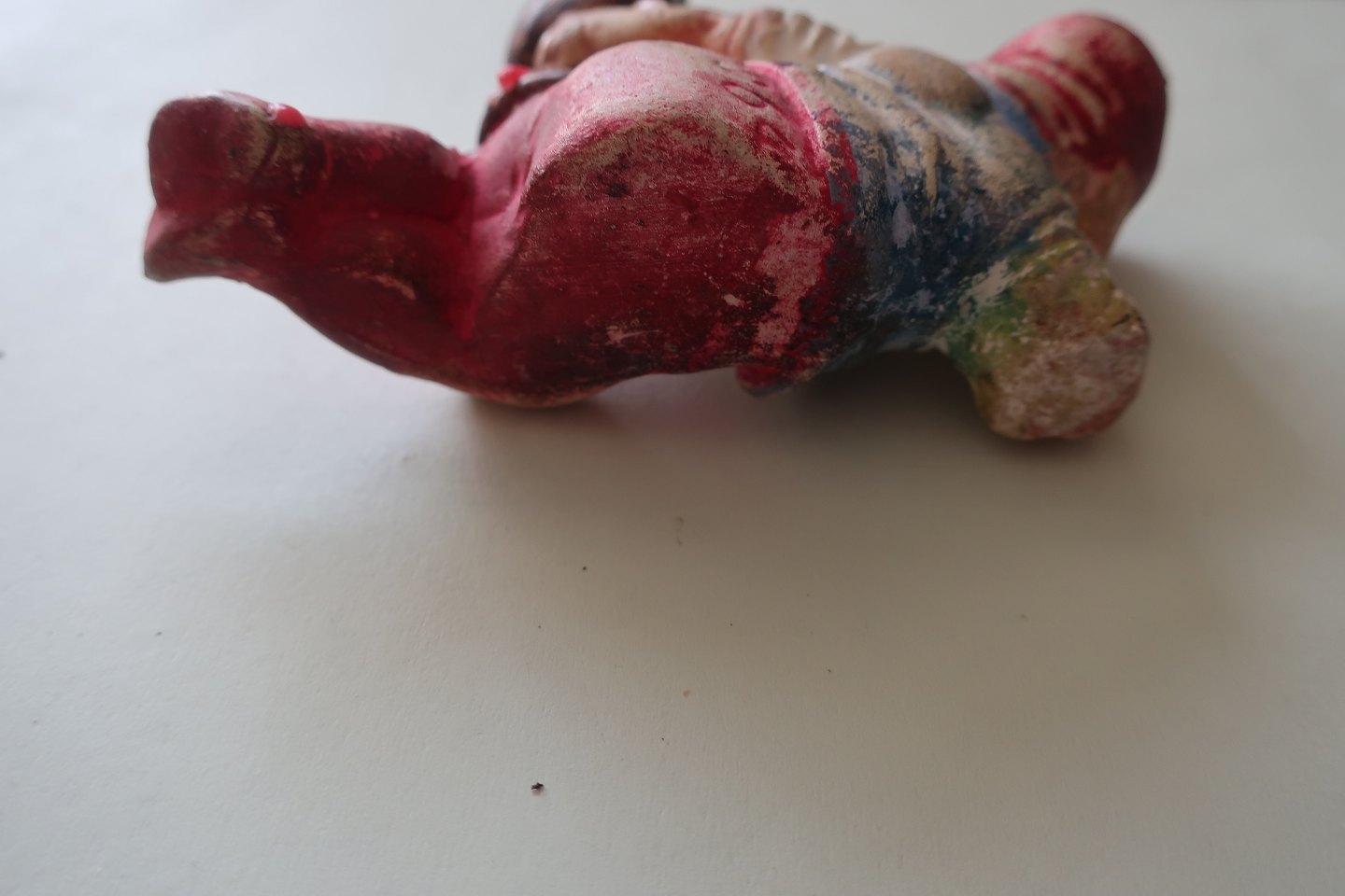 1 gammel nisselysestage til kertelys Liggende nisse Gips og håndmalet H: 5cm B: 10cm Fra 1940-1950'erne Stemplet nr.. 964 på rumpen God stand Varenr.: KH1006