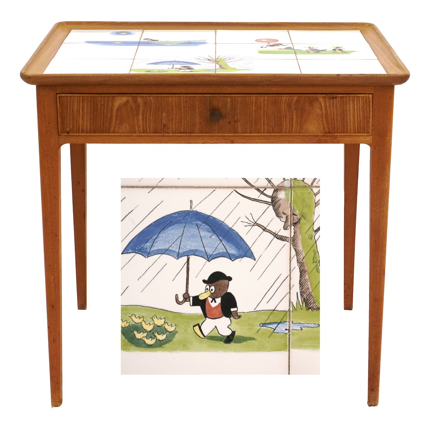 Rare Danish tile top table by the Danish artist Storm P. H: 65cm. Top: 52x68cm
