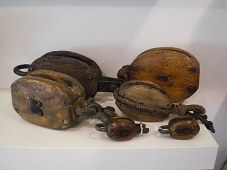 6 gamle træblokke.