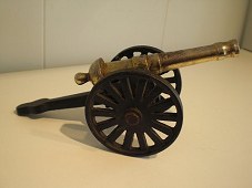 Lille bordkanon i messing og jern.