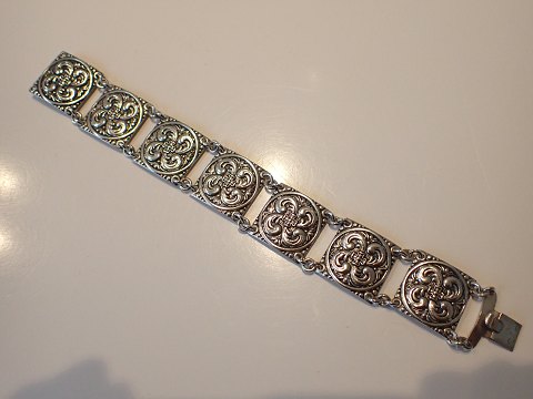 Nils Elvik, Oslo (1853 - 1948) - leddelt skønvirke armbånd i 830 sølv. Ca. 1920. Længde: 16,5 cm. Bredde: 2,8 cm.Vægt: 22 gram. I pæn tidstypisk stand.