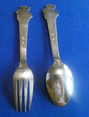 Set Kleinkind Löffel und Gabel in gutem gebrauchtem Zustand ohne Inskription, und mit intakter Vergoldung.
