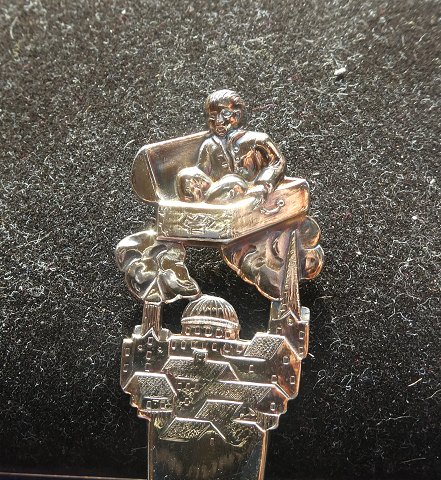 Märchen dänisch Kinderbesteck Taufbesteck in dänisch vergoldetem drei Türme Silber mit Der fliegende Koffer.