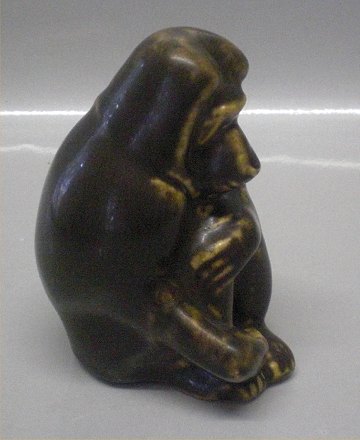 Keramik abe fra Michael Andersen 10 cm - Bavian Brun glasur I fin stand Mærket med de tre fisk i trekant